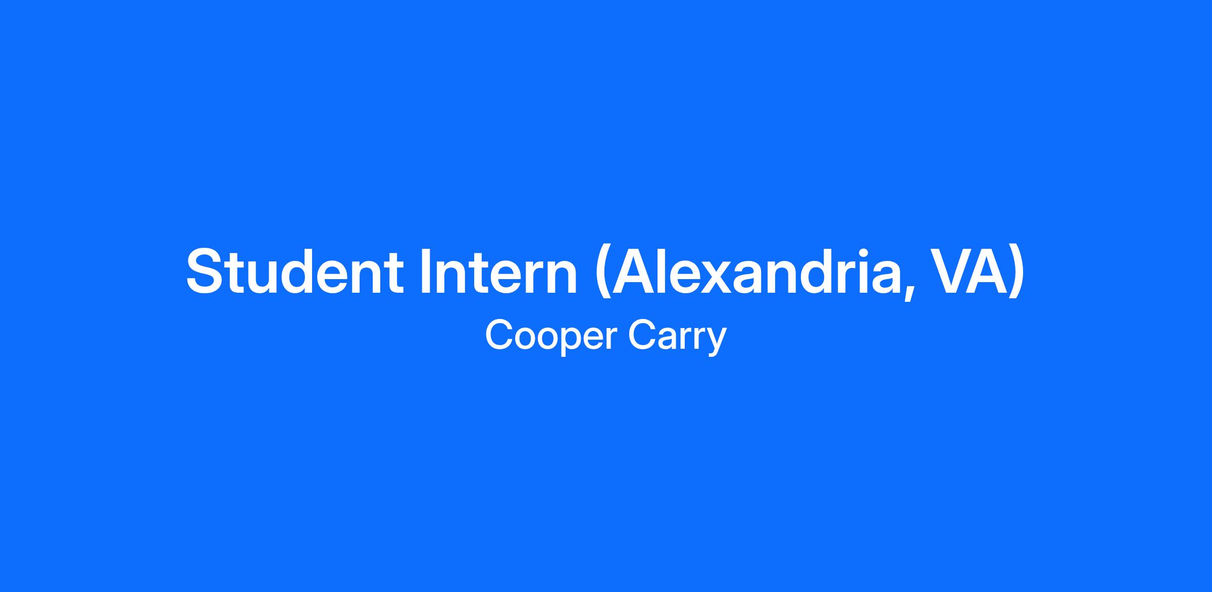 The Student Intern is the entry level position for the current or recently graduated student who are interested in exploring a career in Architecture, Interior Design or careers supporting Cooper Carry. The Student Intern will concentrate on tasks that contribute to their educational pursuits and the overall success of Cooper Carry.