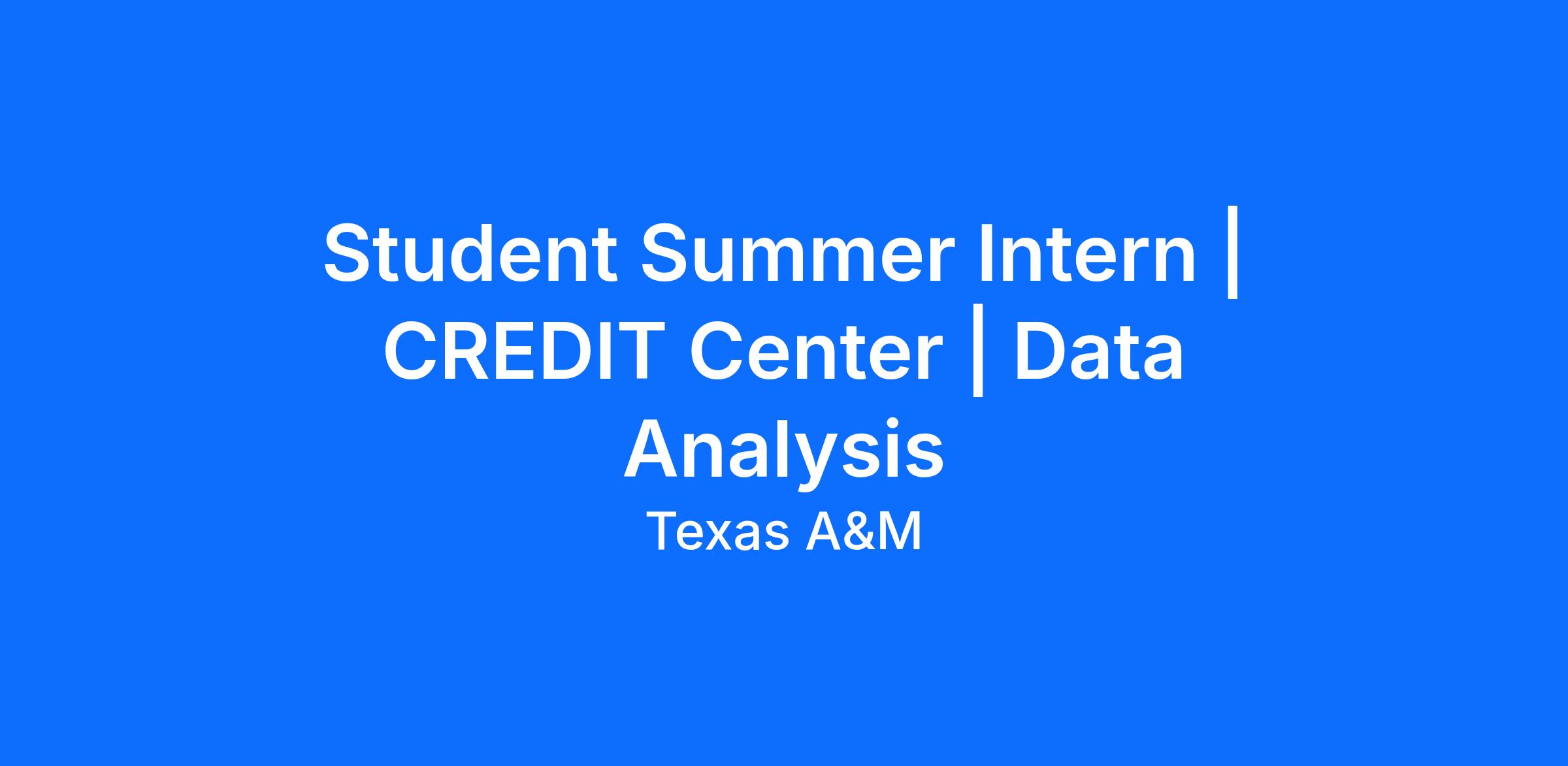 Student Summer Intern | CREDIT Center | Data AnalysisAgency