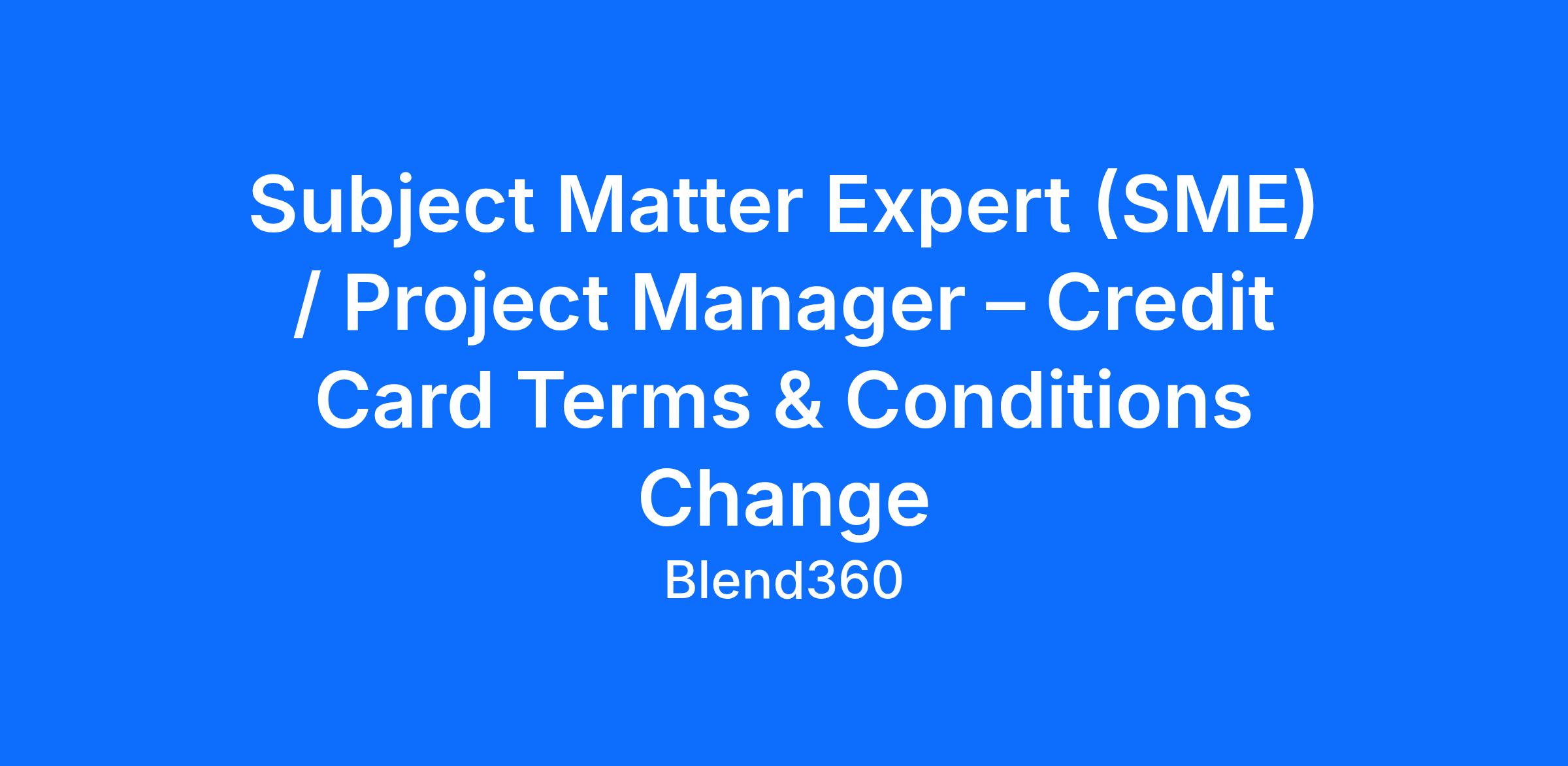 We are seeking a Subject Matter Expert (SME) / Project Manager – Credit Card Terms & Conditions Change to contribute to our next level of growth and expansion.