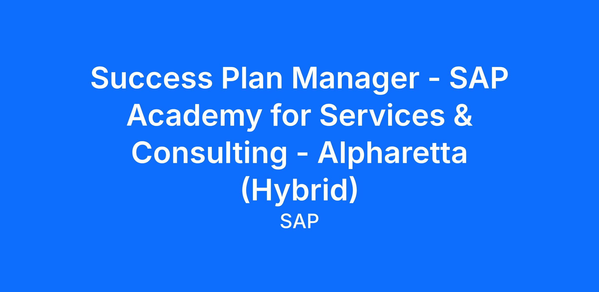 As part of the SAP Academy for Services & Consulting, Success Plan Manager Associate’s will: