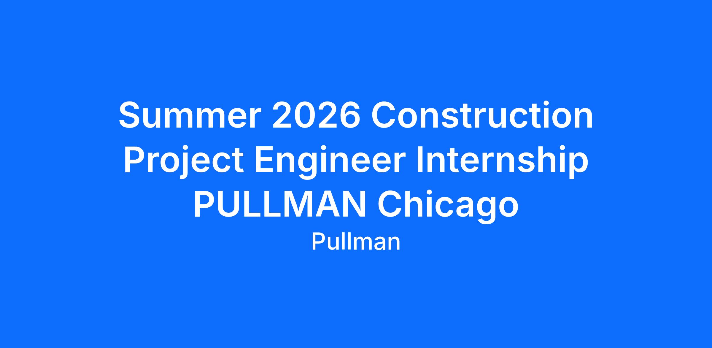 Our Summer 2026 Internship will be an in-office position supported by our PULLMAN Chicago team located in Rolling Meadows, IL. In this role, you can expect to be on site at project across the greater Chicago area 50% of the time. Our PULLMAN Chicago team will tackle projects across multiple industries; however, this branch’s primary industries are commercial and public. Throughout your internship experience, you can expect to learn about multiple projects within these industries. For more information on PULLMAN Chicago, please refer to PULLMAN Chicago’s website page: Chicago | PULLMAN