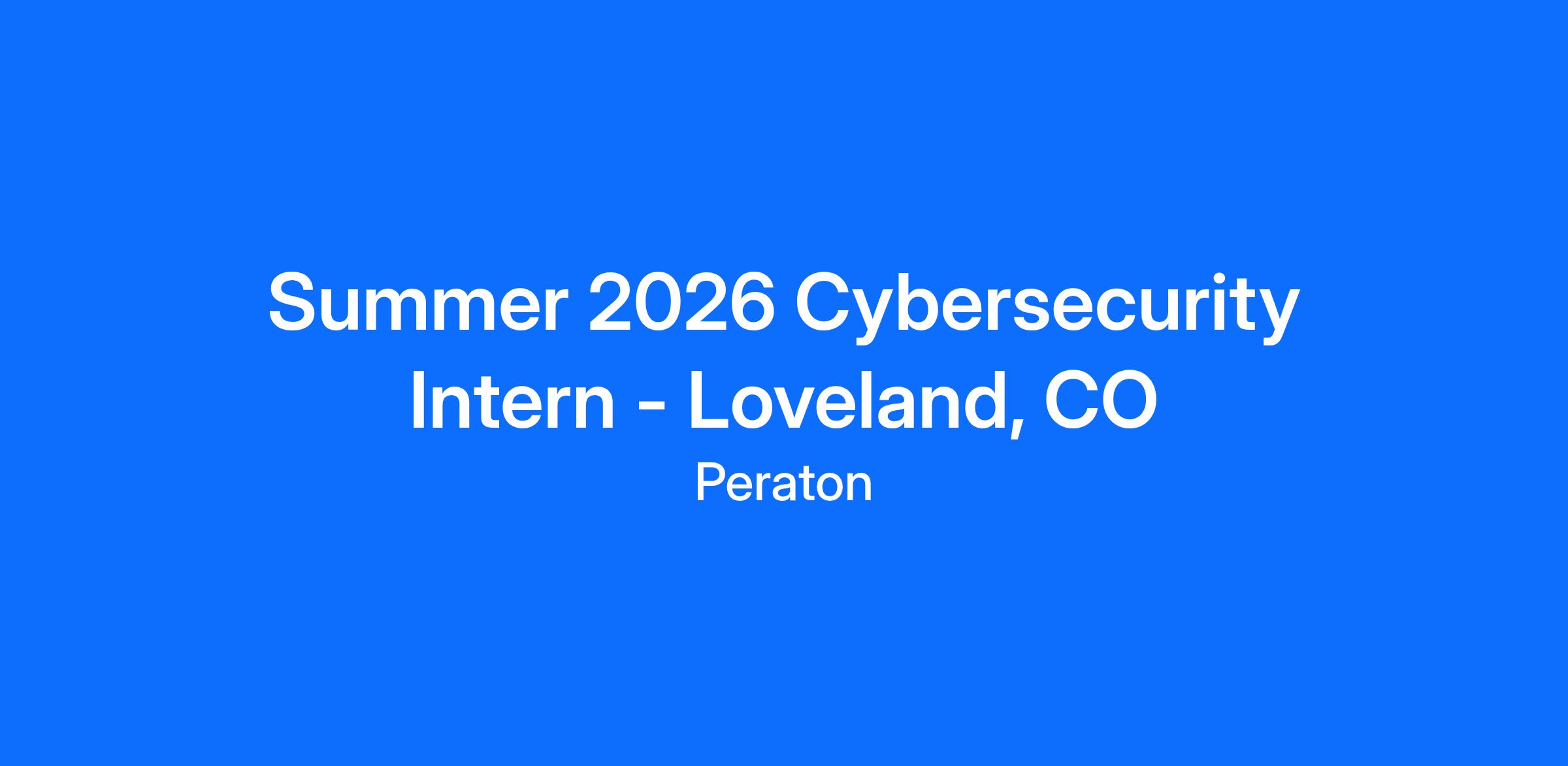 Peraton is seeking a Summer 2026 Cybersecurity Intern in our Loveland, CO office. This is a hybrid position requiring in-office and remote work.