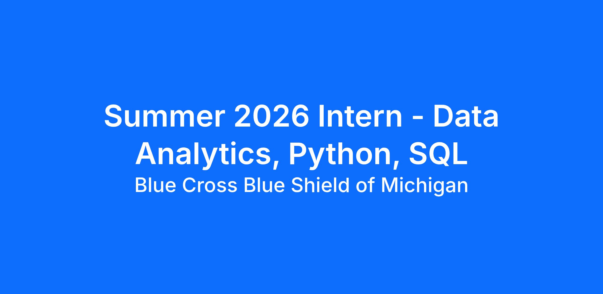 DescriptionThe Internship Program at BCBSM is designed to enhance the skills and abilities of young professionals as well as to identify and attract future talent for our organization. Interns will gain practical hands-on work experience as well as a solid understanding of the health insurance industry. Our program is an excellent way for interns to get a good start on their careers by working on meaningful projects, learning valuable skills, and networking with employees throughout our organization, which could potentially allow interns to build a future career at BCBSM.