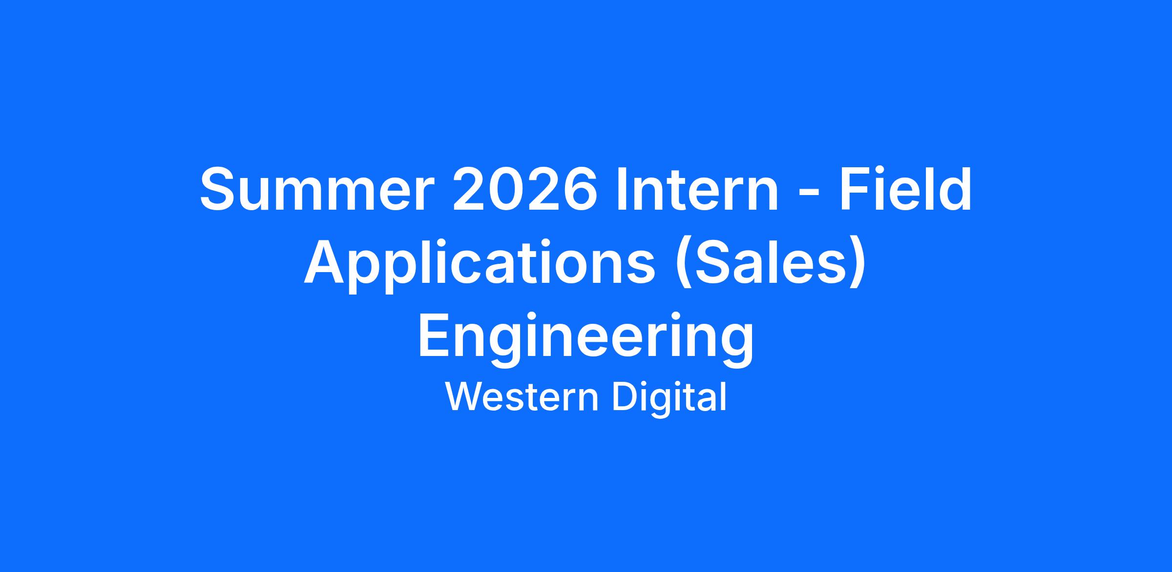 Summer 2026 Intern - Field Applications (Sales) Engineering