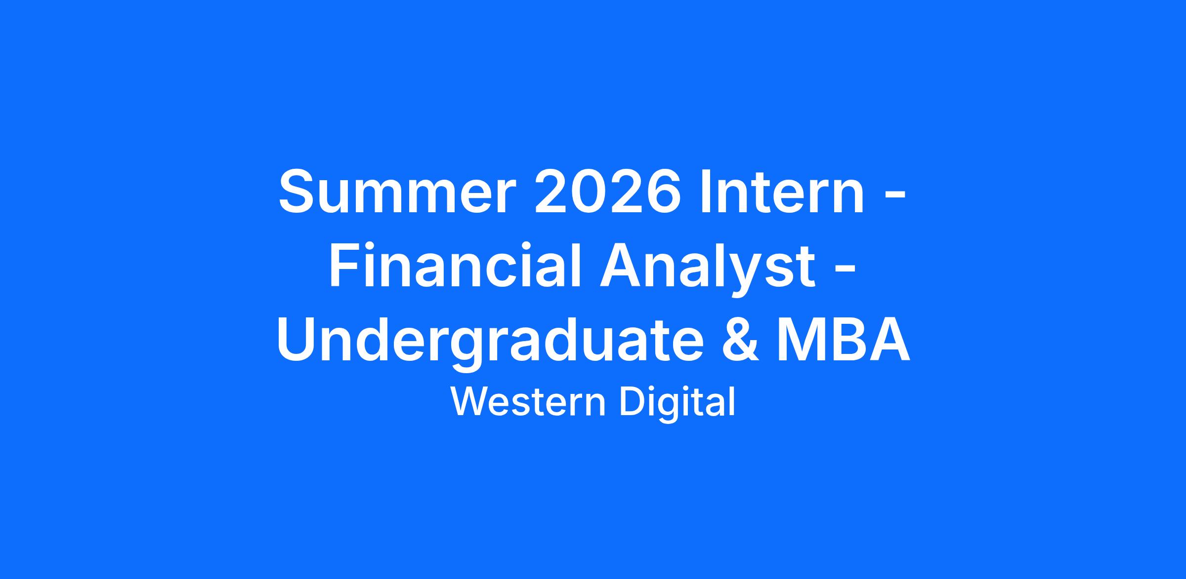 Western Digital is seeking highly motivated undergraduate and MBA students to join our Finance & Accounting teams for a hands-on internship experience during Summer 2026. Interns will have the opportunity to contribute to impactful projects, collaborate with cross-functional teams, and gain exposure to key areas of corporate finance.