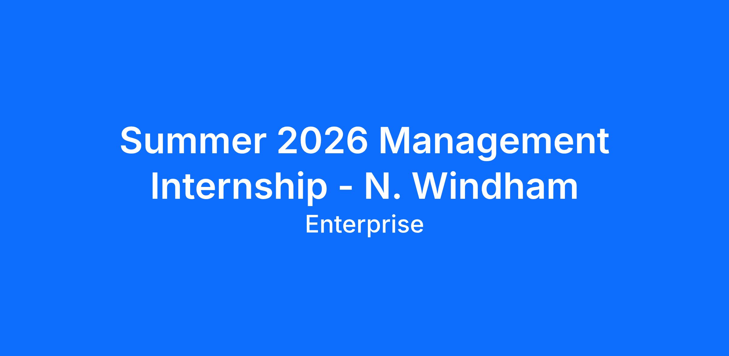 Summer 2026 Management Internship - N. Windham