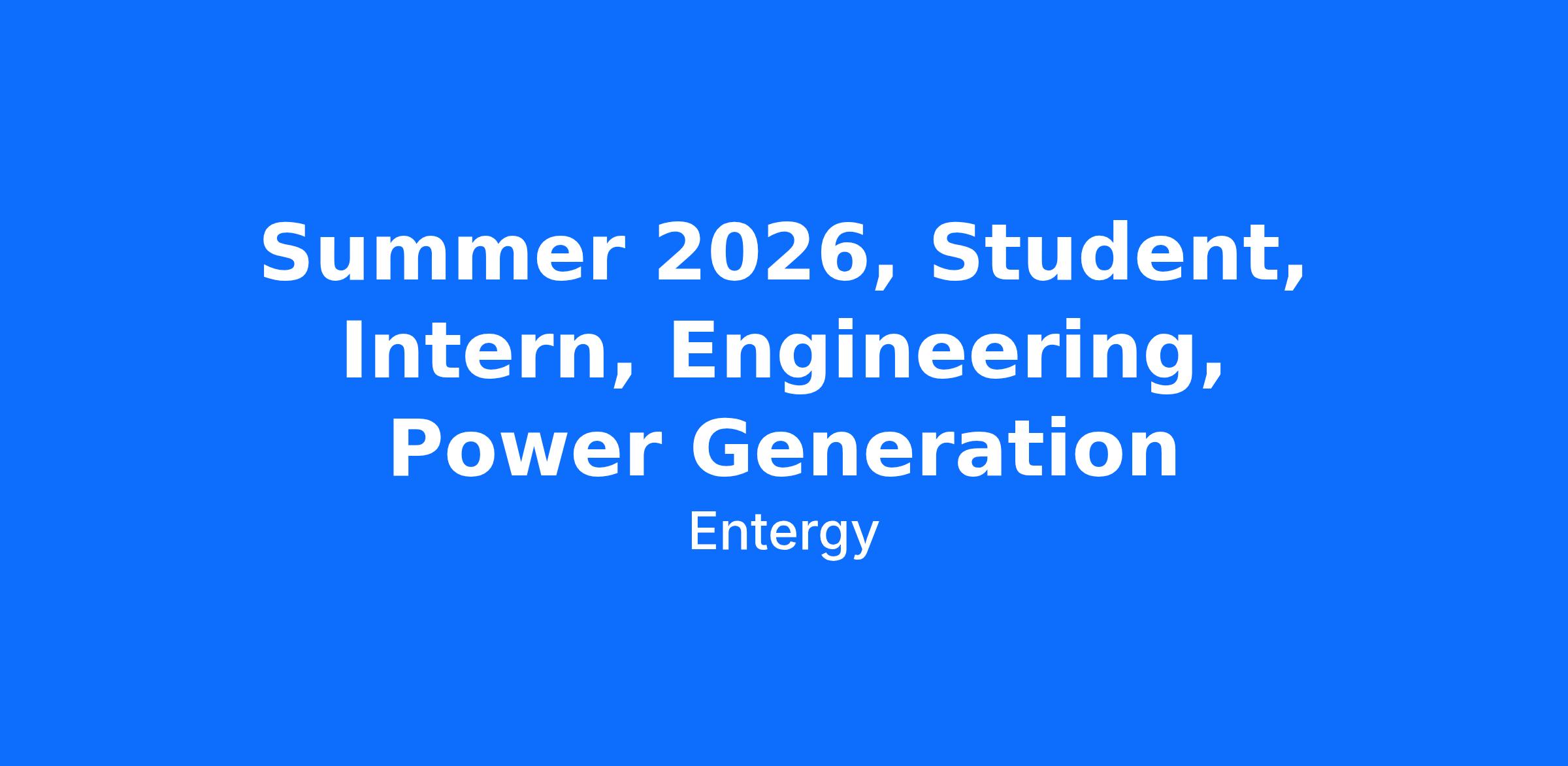 Job Title: Summer 2026, Student, Intern, Engineering, Power Generation