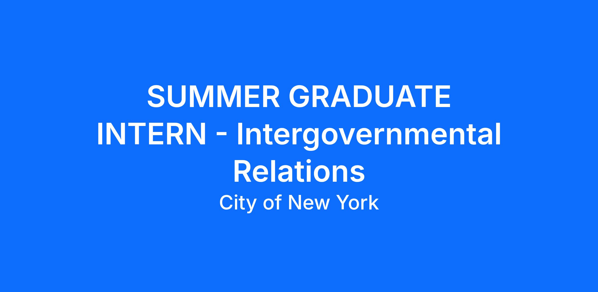 The Intergovernmental Relations Task Force tracks citywide policy across the federal, state, and city levels, coordinates during the city budgeting process, and interfaces with other city agencies, mayoral offices, and key stakeholders on the administration’s priorities. The graduate intern will work on numerous projects to support the Intergovernmental Relations Unit, with a focus on city and state activities, organization and automation of processes, and preparation for the upcoming state and city legislative and budget cycles.