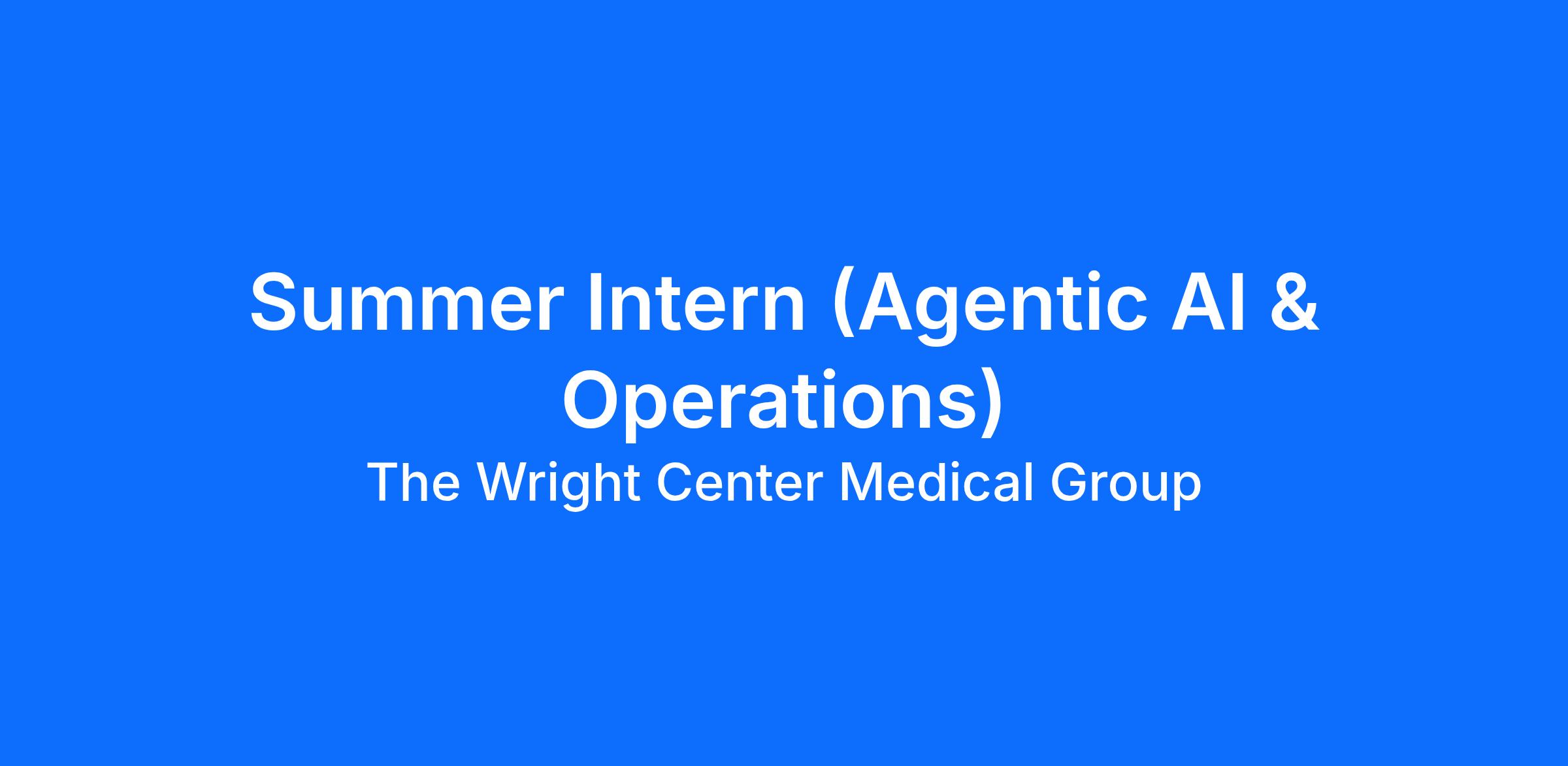 Position Overview: The Wright Center for Community Health and Graduate Medical Education is seeking an innovative and tech-forward Summer Intern to join our team. In addition to supporting general business operations and senior leadership, this role will specifically focus on identifying and developing Agentic AI solutions. You will serve as a bridge between technology and departmental workflows, working with internal teams to build autonomous agents that streamline operations and enhance workplace performance.