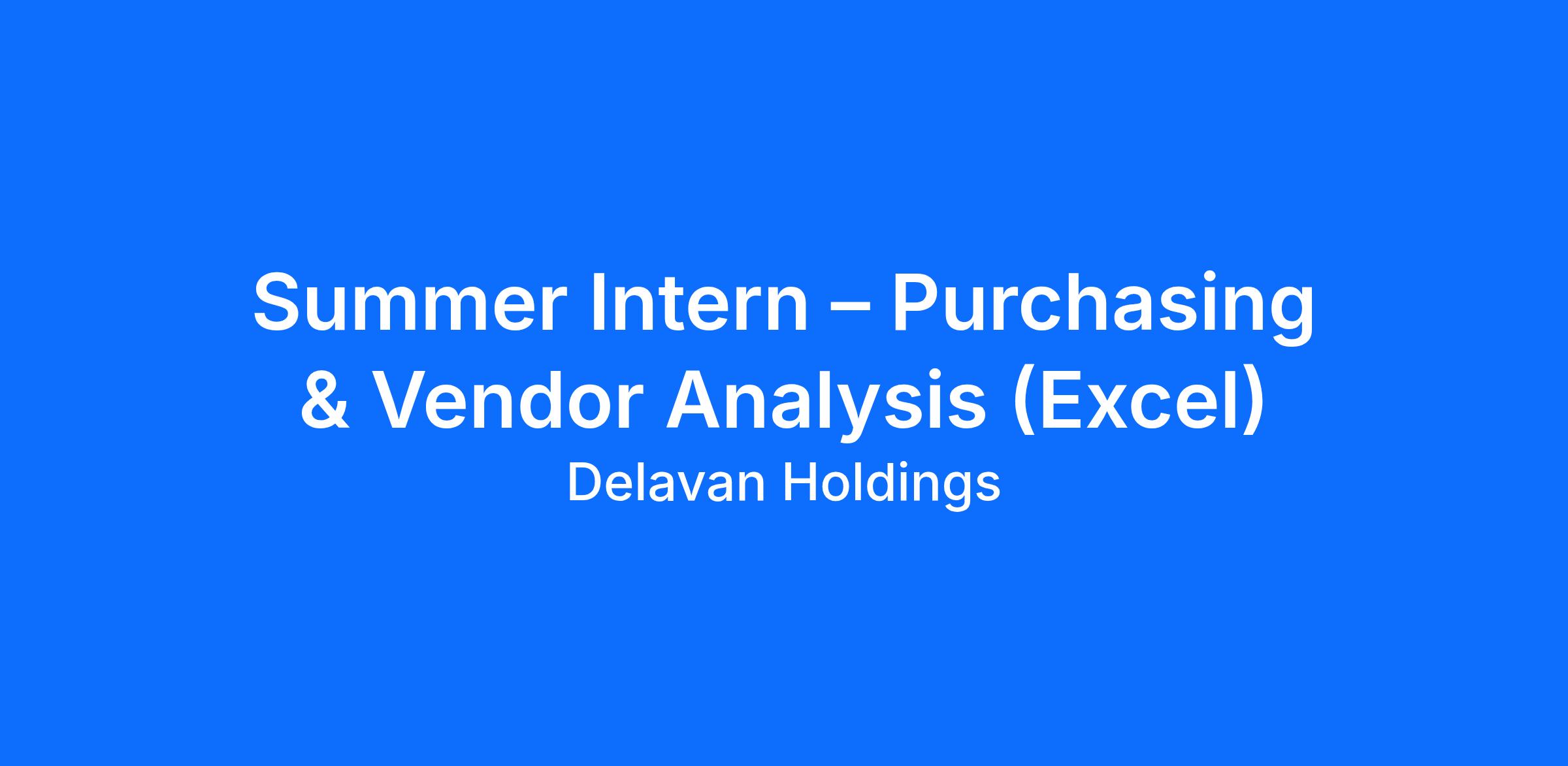 Delavan Holdings is seeking a Summer Intern to support purchasing and vendor analysis across multiple operating companies, including Kunes Auto Group, G10 Fulfillment, Lake Lawn Resort, Camp Timber-Lee, and others. This role focuses on vendor research, contract and invoice review, pricing validation, and Excel-based analysis before items are submitted to Accounts Payable.