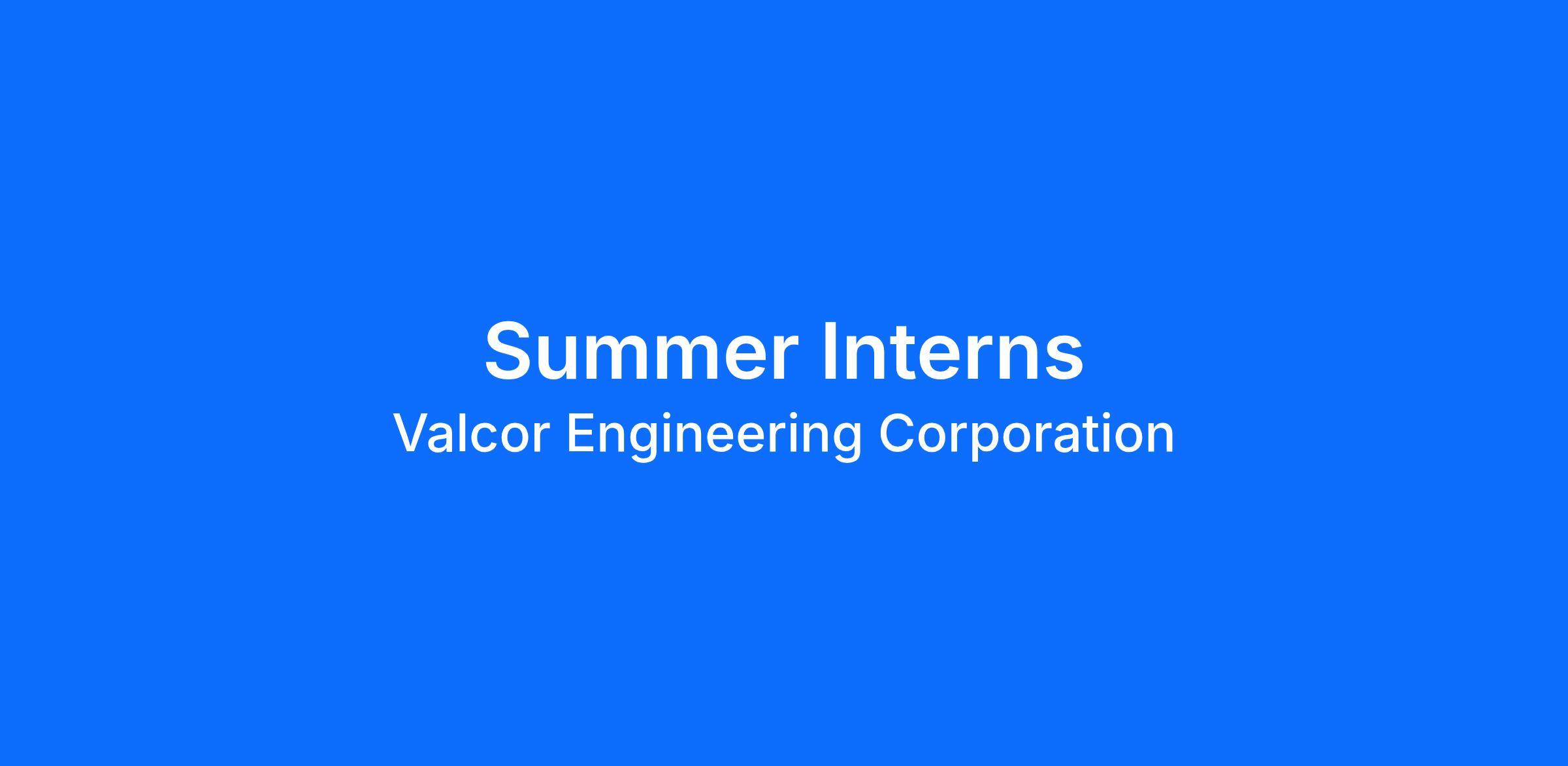 Our internship program will provide our interns with detailed exposure to Valcor Engineering-its products and services, and an introduction into the Aerospace, Nuclear and Scientific industries that we service.