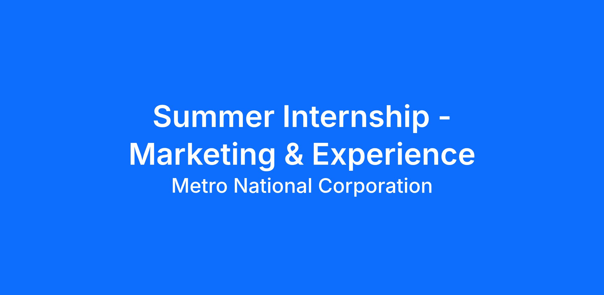 - What you hope to gain from MetroNational’s Internship Program