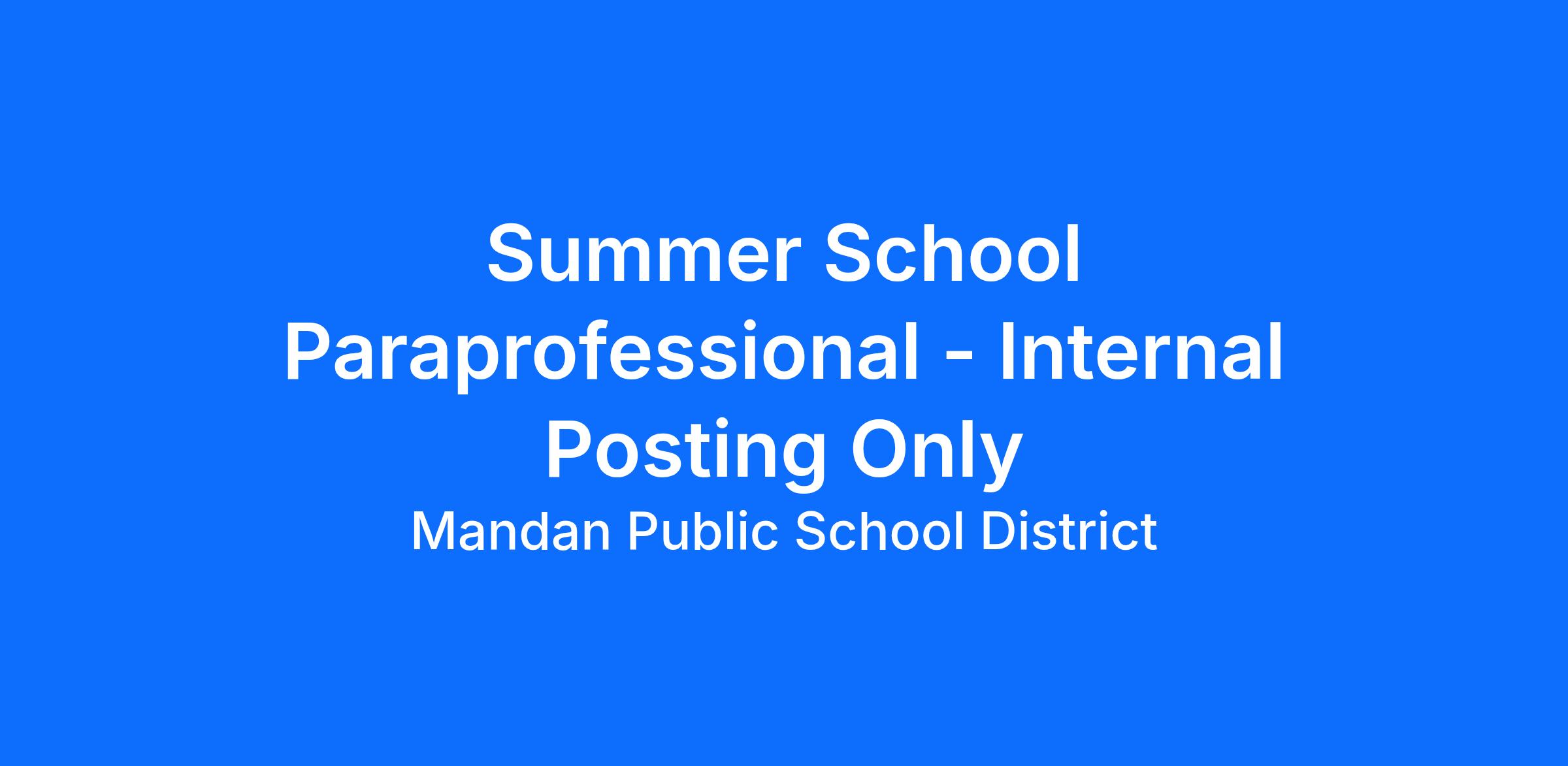 This is an Internal Posting for current employees of Mandan Public School District.