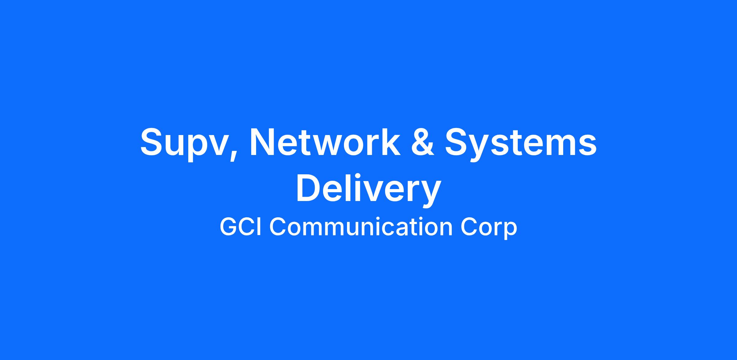 | GCI's Supv, Network & Systems Delivery will provide Supervision and leadership of Engineers. Advanced level engineering position Responsible to successfully facilitate both simple and complex engineering projects and deliver solutions that meet scope requirements on time and within budget. Position requires a high level of specific discipline expertise, knowledge of other engineering disciplines, and the ability to make technical decisions independently on significant engineering problems. Position provides technical leadership, oversight, and mentoring to junior engineers, as well as support to interdepartmental groups as required. |