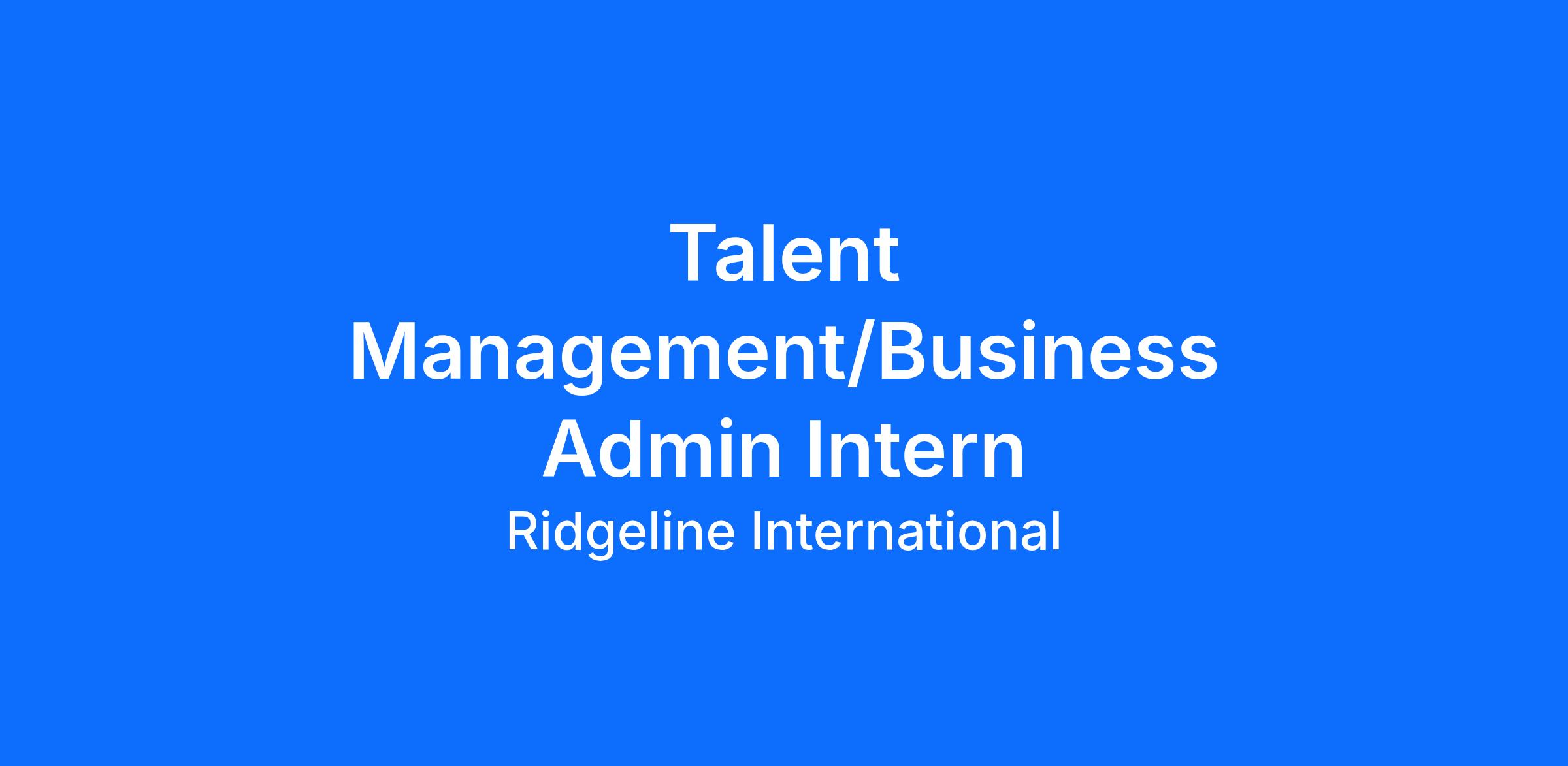 Ridgeline International is seeking a Talent Management Intern to join our team for the summer of 2026. In this role, you will gain firsthand experience in talent acquisition, workforce planning, performance management, and employee development. Working alongside our talent management professionals, you will contribute to programs and strategies that help Ridgeline attract, develop, and retain exceptional people.
