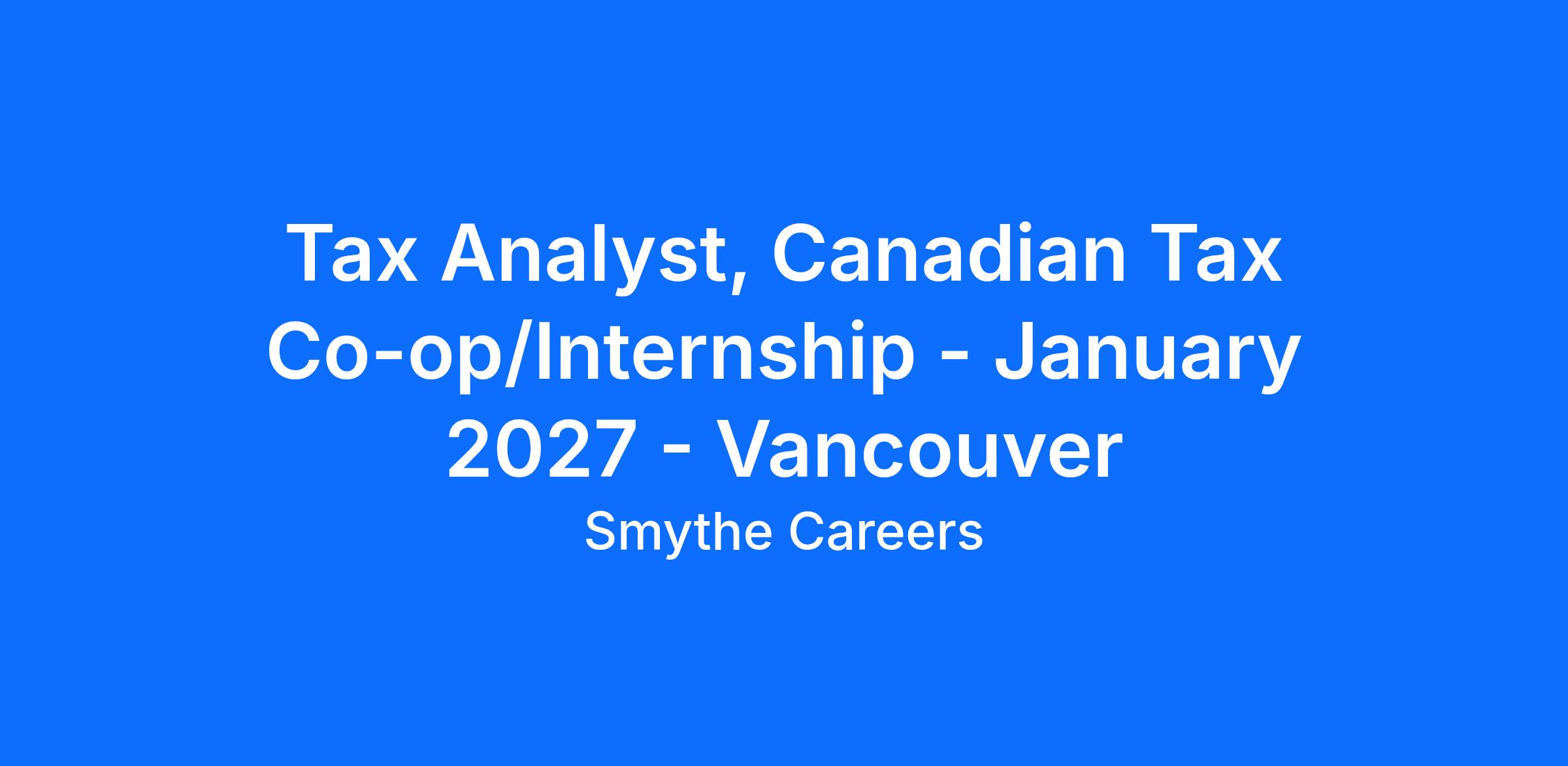 Tax Analyst, Canadian Tax Co-op/Internship - January 2027 - Vancouver