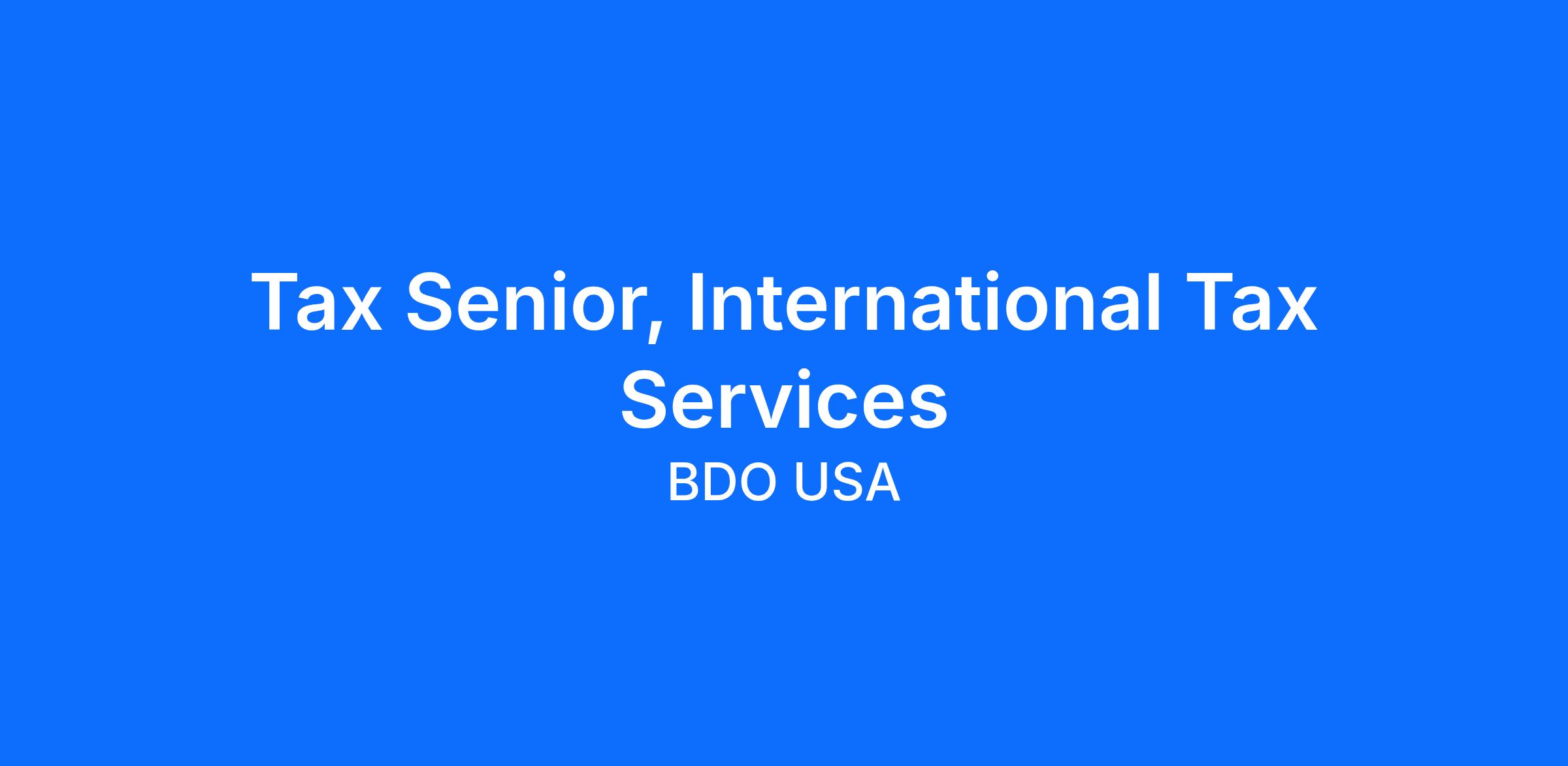 The Tax Senior, International Tax Services is responsible for utilizing research skills and applying their educational background to identify potential tax issues and planning opportunities for multinational businesses with operations in the U.S. and overseas with a focus on a large variety of industries. In this role, the Tax Senior, International Tax Services will be charged with researching and summarizing tax technical positions, assessing filing obligations associated with the multinational business structures and managing U.S. international tax compliance projects including gathering required client information necessary to prepare or review tax workpapers, to utilize tax software applications to complete or review international tax returns. The Tax Senior, International Tax Services will also prepare quantitative analysis and modeling tax impacts of various planning options, identify tax planning opportunities in a collaborative environment to develop appropriate solutions and coordinate the implementation process. In addition, this role will interact with clients, BDO internal service teams, BDO member firms globally and outside advisors as well as assist with training and developing junior team members.