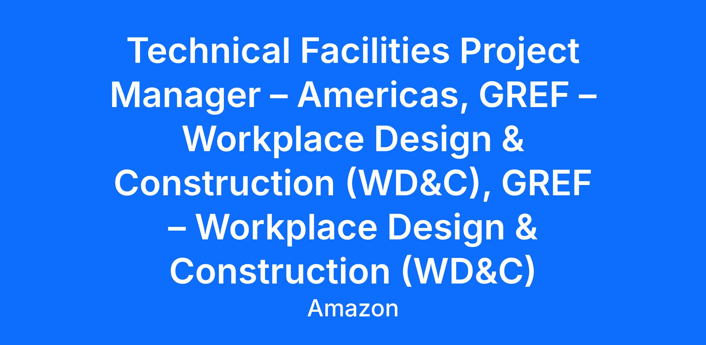 The Technical Facilities Project Manager leads complex design and construction projects ($5K-$10MM+) in Amazon's corporate facilities. This role supports Amazon's expansion into aerospace, life sciences, robotics, quantum computing, devices, and government industry sectors by managing new construction, renovations, and facility modifications. The position is part of Amazon's Global Real Estate and Facilities (GREF) organization with a dotted line to one of Amazon’s businesses.