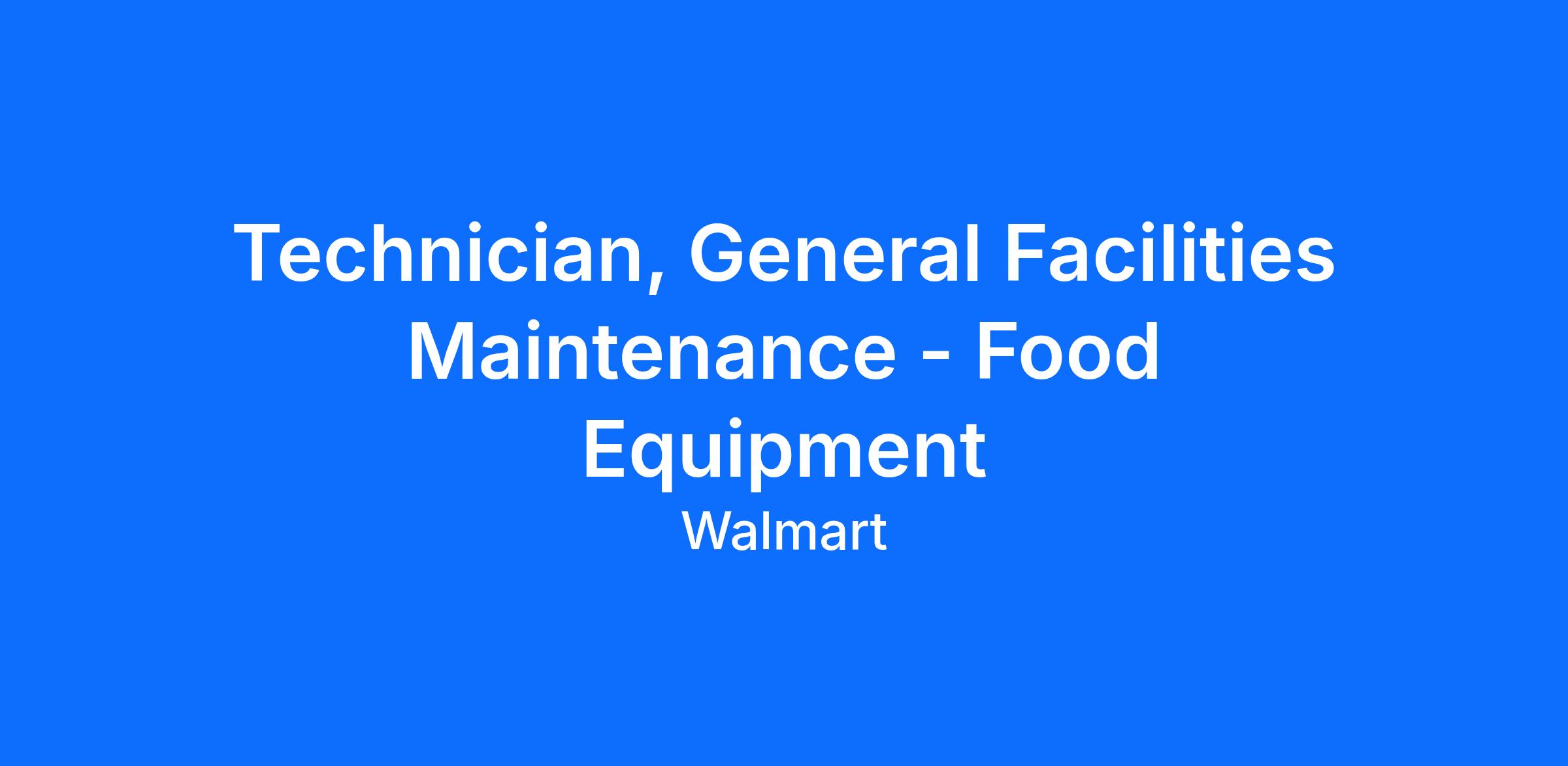 Walmart is hiring General Maintenance Technicians! You will make an impact as a maintenance technician by diagnosing, repairing, and performing preventative maintenance duties for all commercial equipment to support our Walmart stores! You will be responsible to develop preventative maintenance schedules and complete assigned PMs in the timeframe outlined, as well as conduct training for Store Associates regarding care and cleaning of equipment.