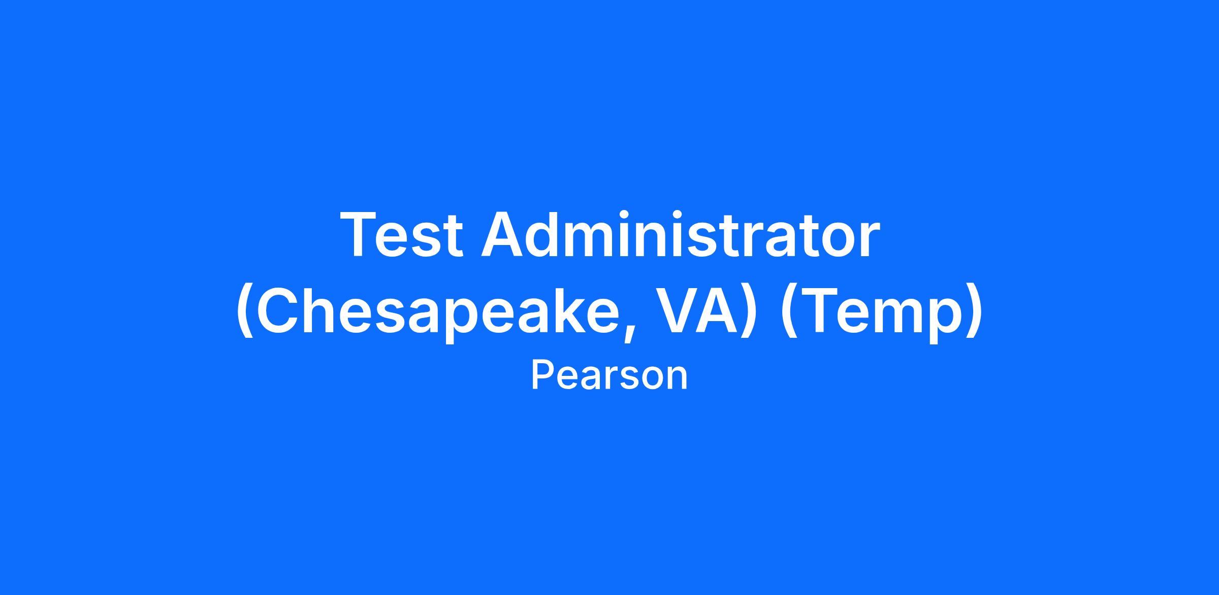 Pearson VUE offers a great environment to start or grow your career. We are now hiring for a temporary part-time Test Administrator to join our team based in Chesapeake, VA (1403 Greenbrier Pkwy).