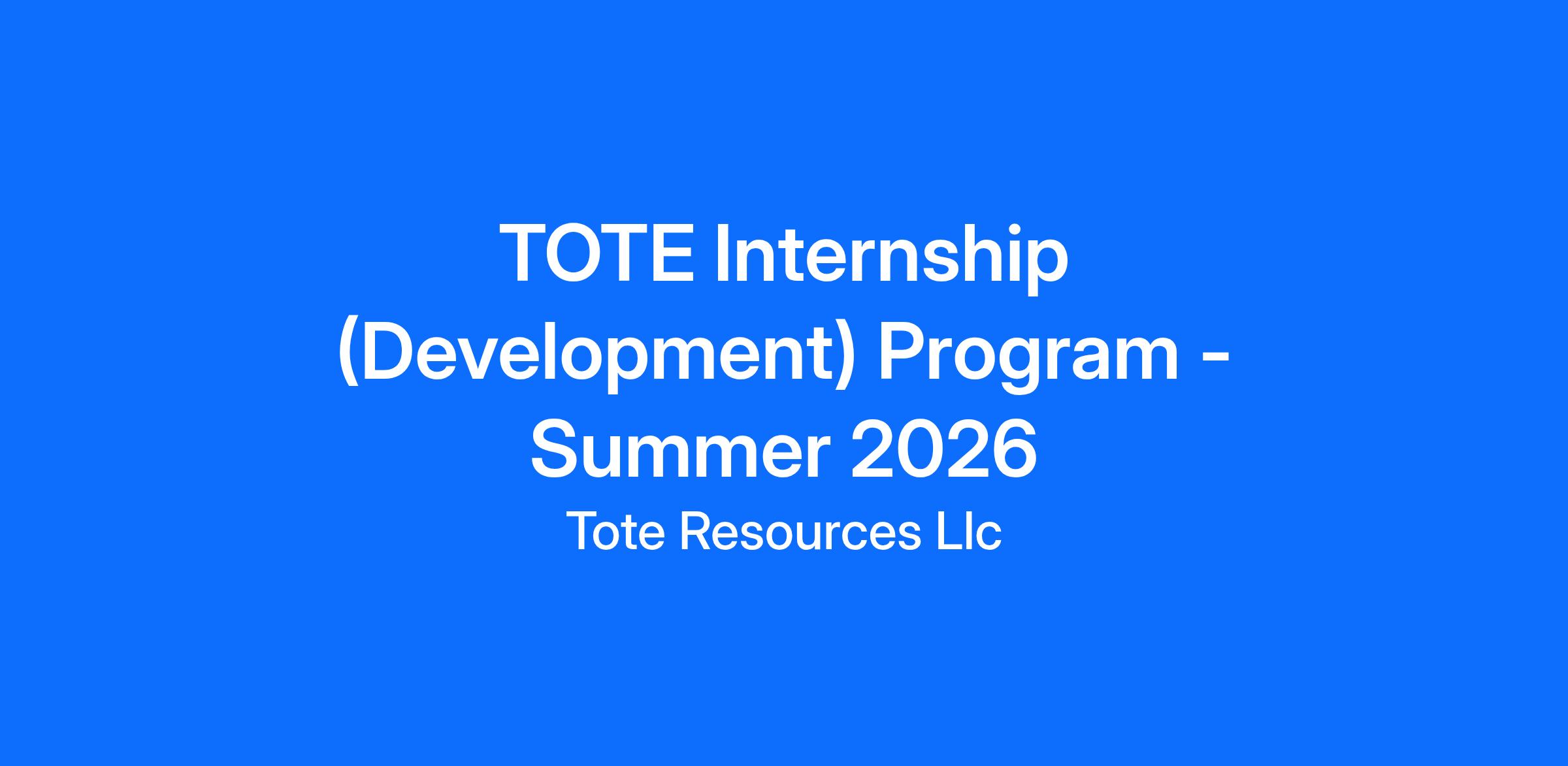 TOTE Development Program Internship Description: