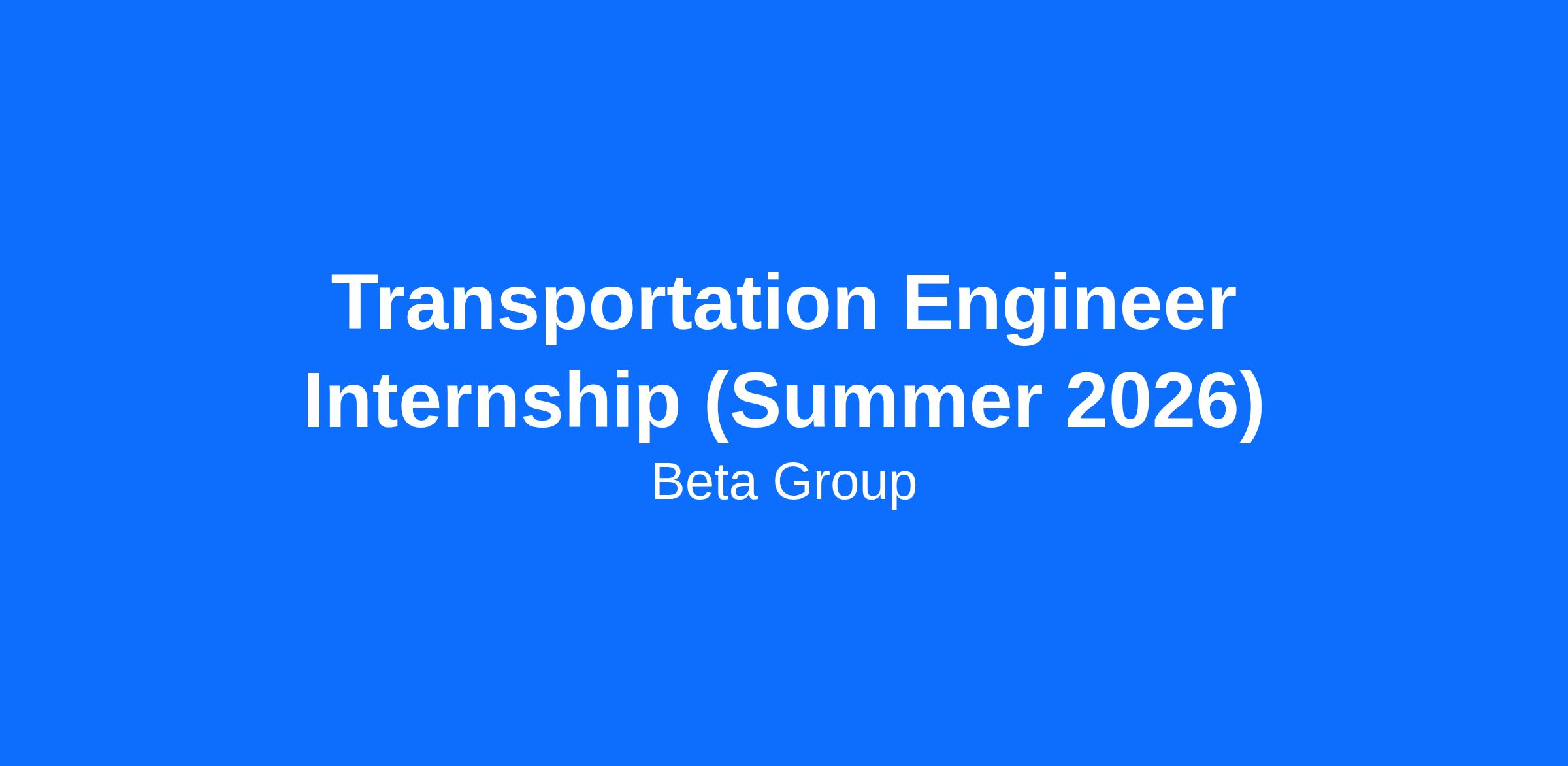 Kickstart your engineering career with hands-on experience in a dynamic, collaborative environment. BETA Group, Inc. is seeking motivated candidates for our 2026 Summer Internship – Transportation Engineering program. As an intern, you’ll have the opportunity to contribute to a variety of real-world transportation projects alongside a team of experienced engineers, planners, and scientists. This is a valuable opportunity to learn from industry leaders and gain practical skills that will support your future in engineering.