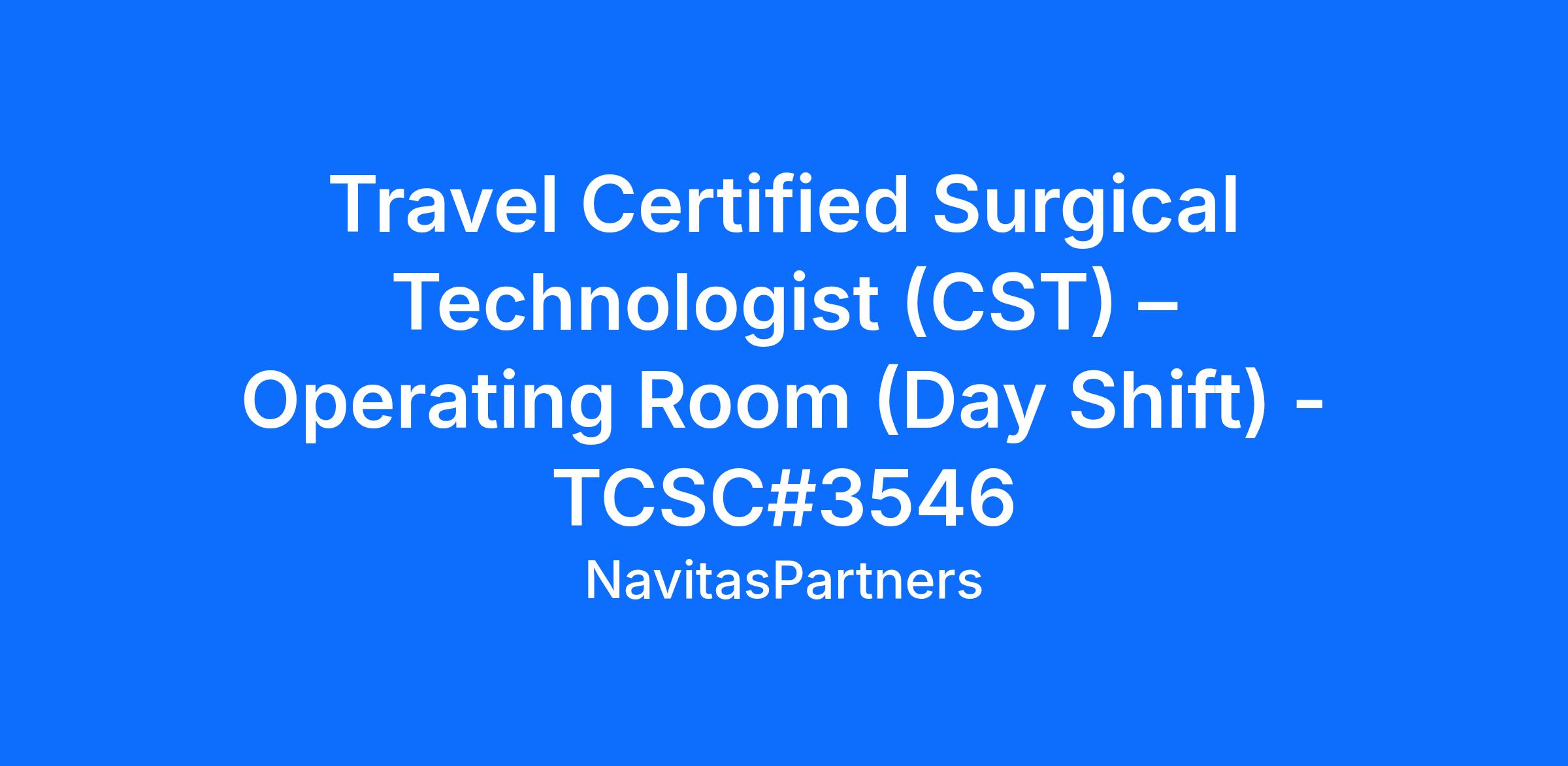 Position Title: Travel Certified Surgical Technologist (CST) – Operating Room (Day Shift)