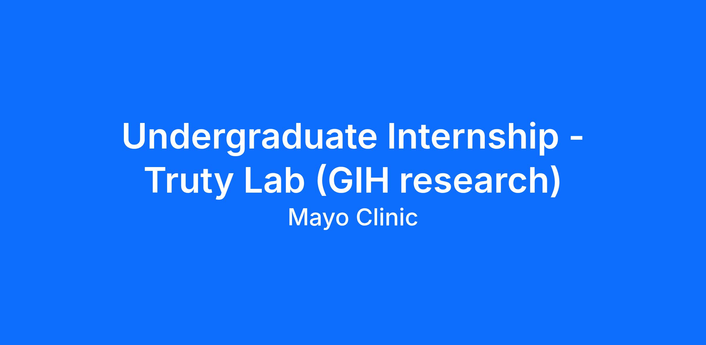 The incumbent must be enrolled in a degree program from a college or university and preferably pursuing a degree relative to this research area. Typically, this internship would occur after the student has taken most of the courses required by the degree program. Must have authorization to work and remain in the United States, without necessity for Mayo Clinic sponsorship now, or in the future (for example, be a U.S. citizen, national, or permanent resident, refugee or asylee).