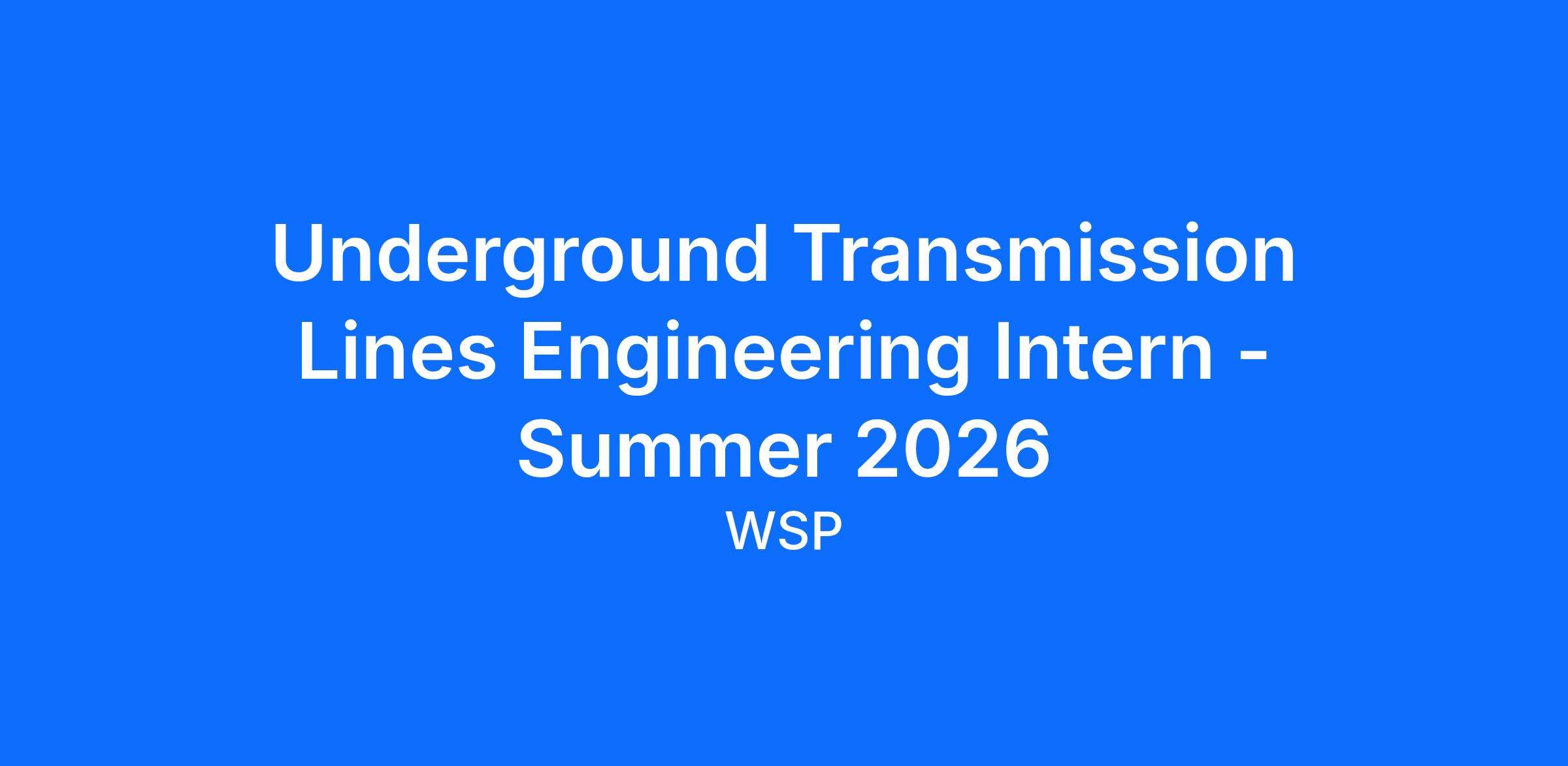 Our Underground Transmission team is seeking an Underground Transmission Lines Engineering Intern - Summer 2026 to work out of our New York, NY office.