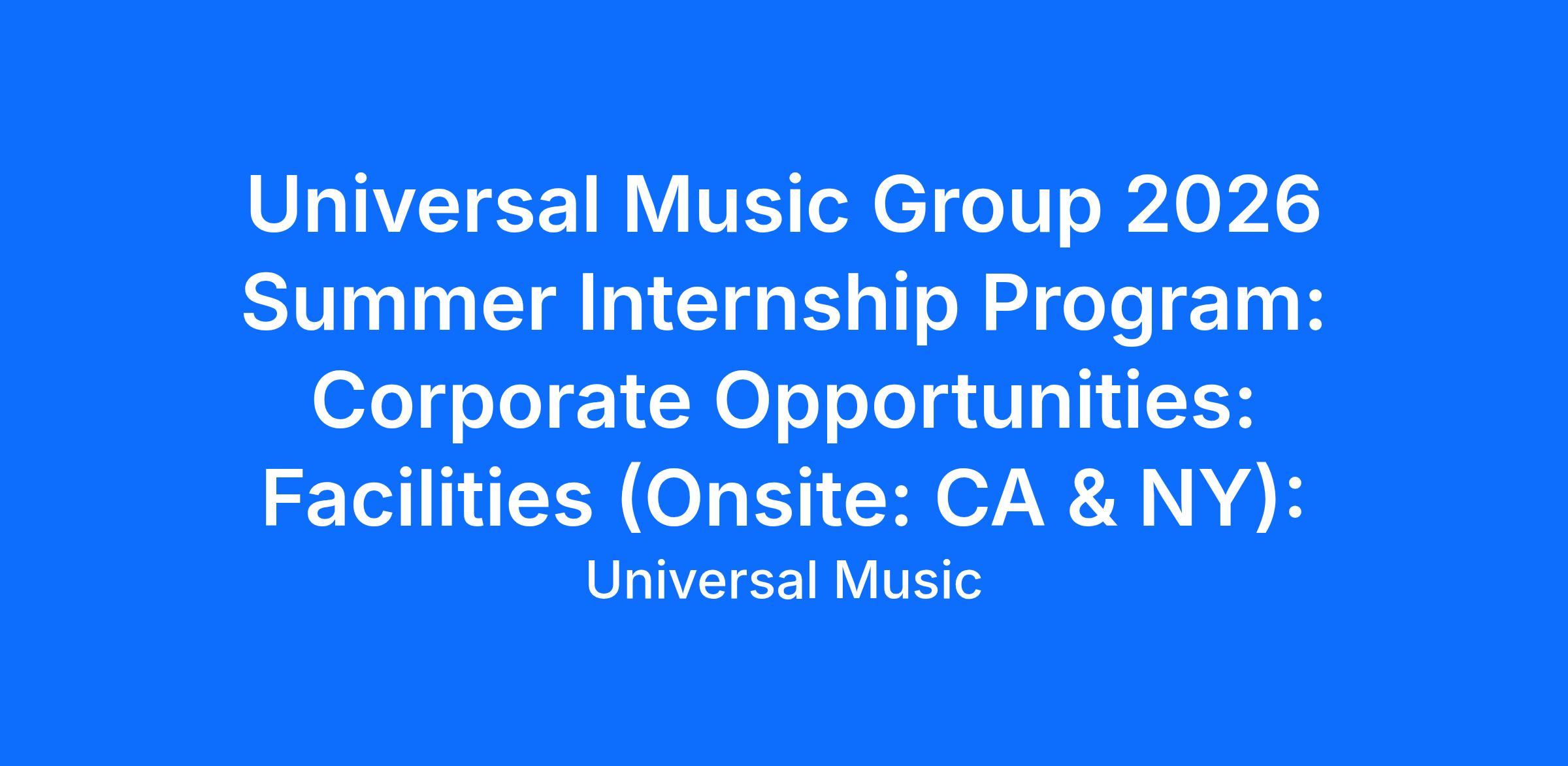Universal Music Group 2026 Summer Internship Program: Corporate Opportunities: Facilities (Onsite: CA & NY):