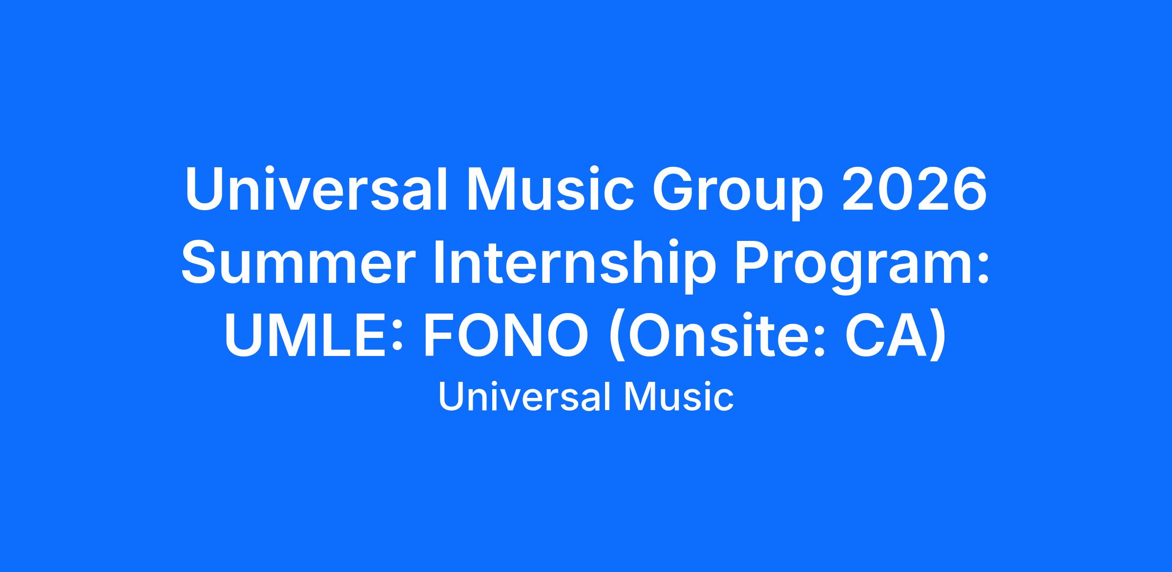 Universal Music Group 2026 Summer Internship Program: UMLE: FONO (Onsite: CA)