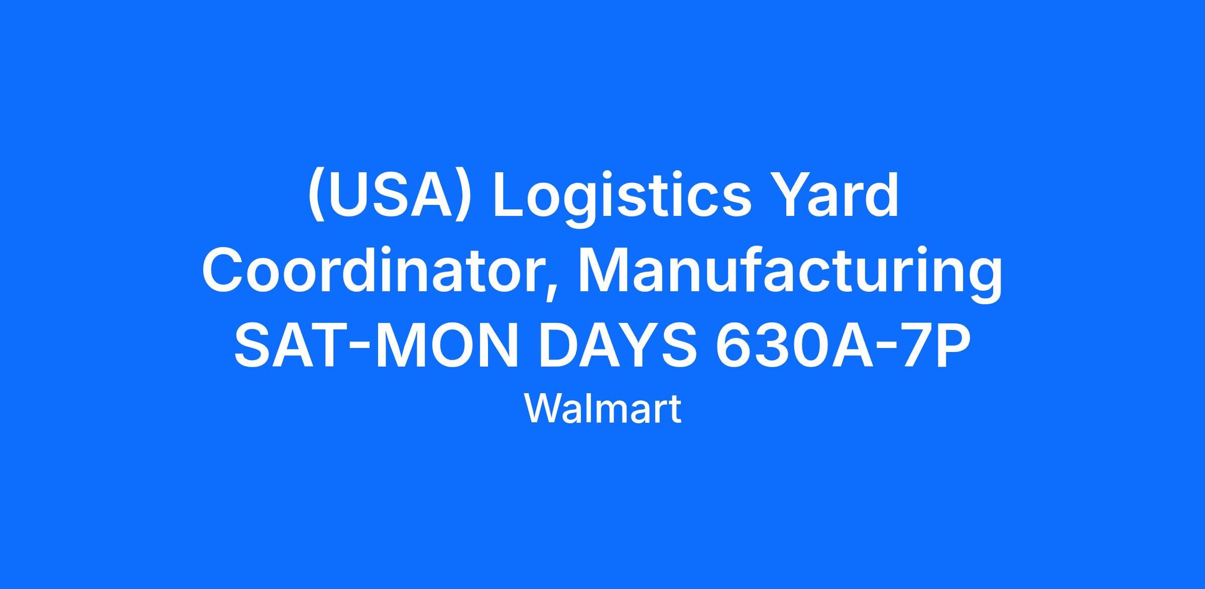 (USA) Logistics Yard Coordinator, Manufacturing SAT-MON DAYS 630A-7P
