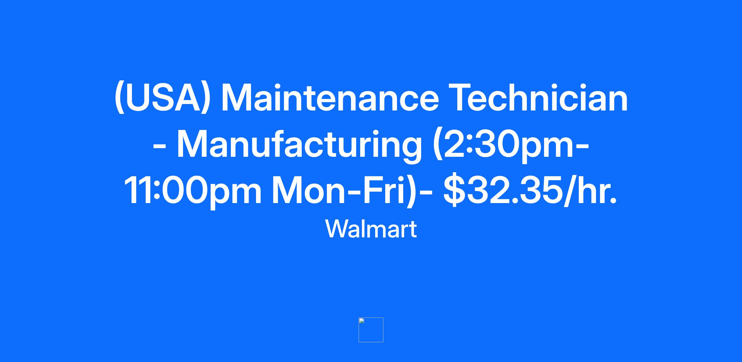 (USA) Maintenance Technician - Manufacturing (2:30pm-11:00pm Mon-Fri)- $32.35/hr.
