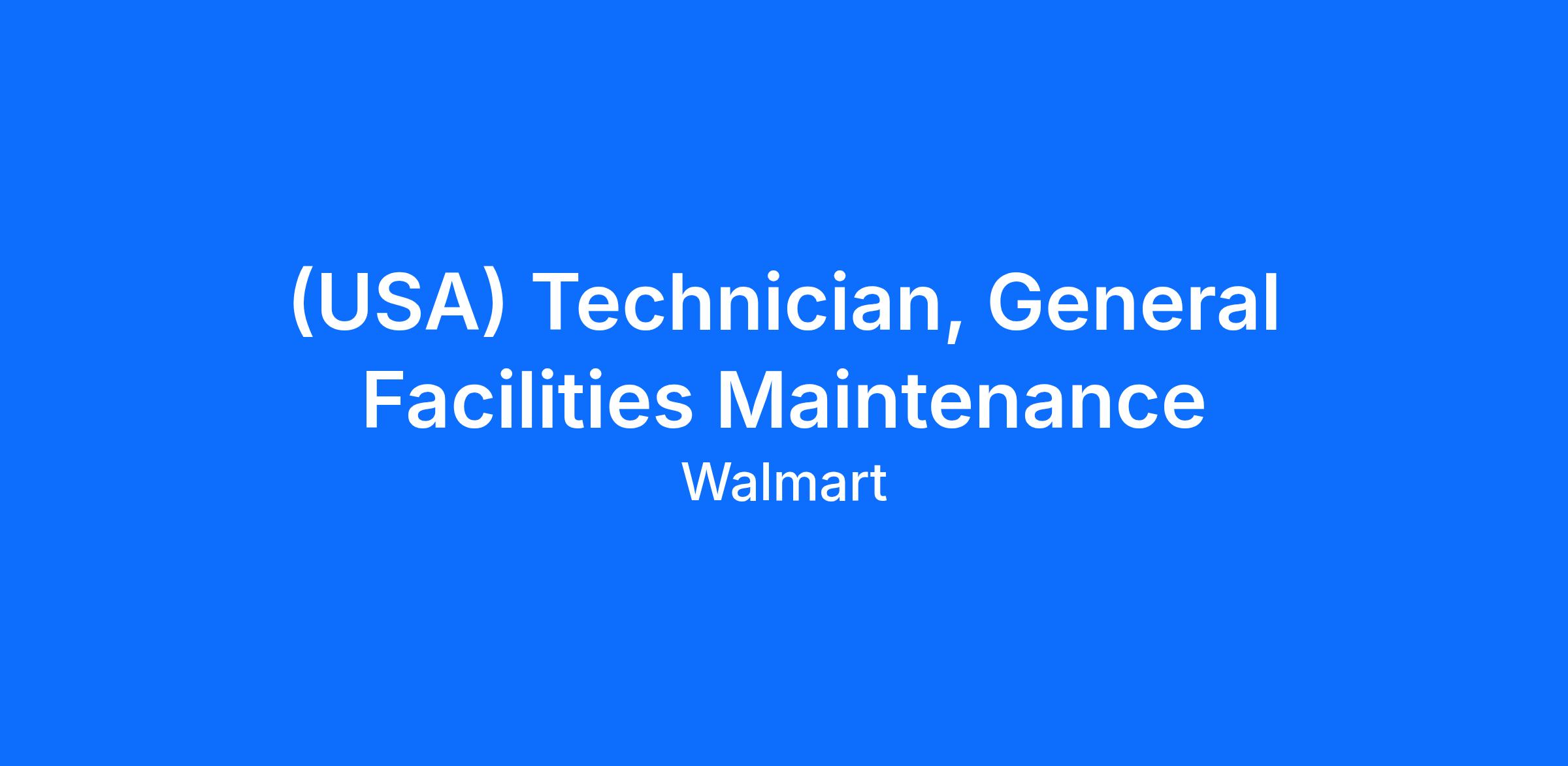 Are you searching for an exciting career opportunity within a dynamic team? Look no further! Walmart is expanding its workforce and looking for a General Facilities Maintenance Technician to join our local, and regional team. If you have experience in this field, we want you to bring your skills to our fast-paced and welcoming environment!