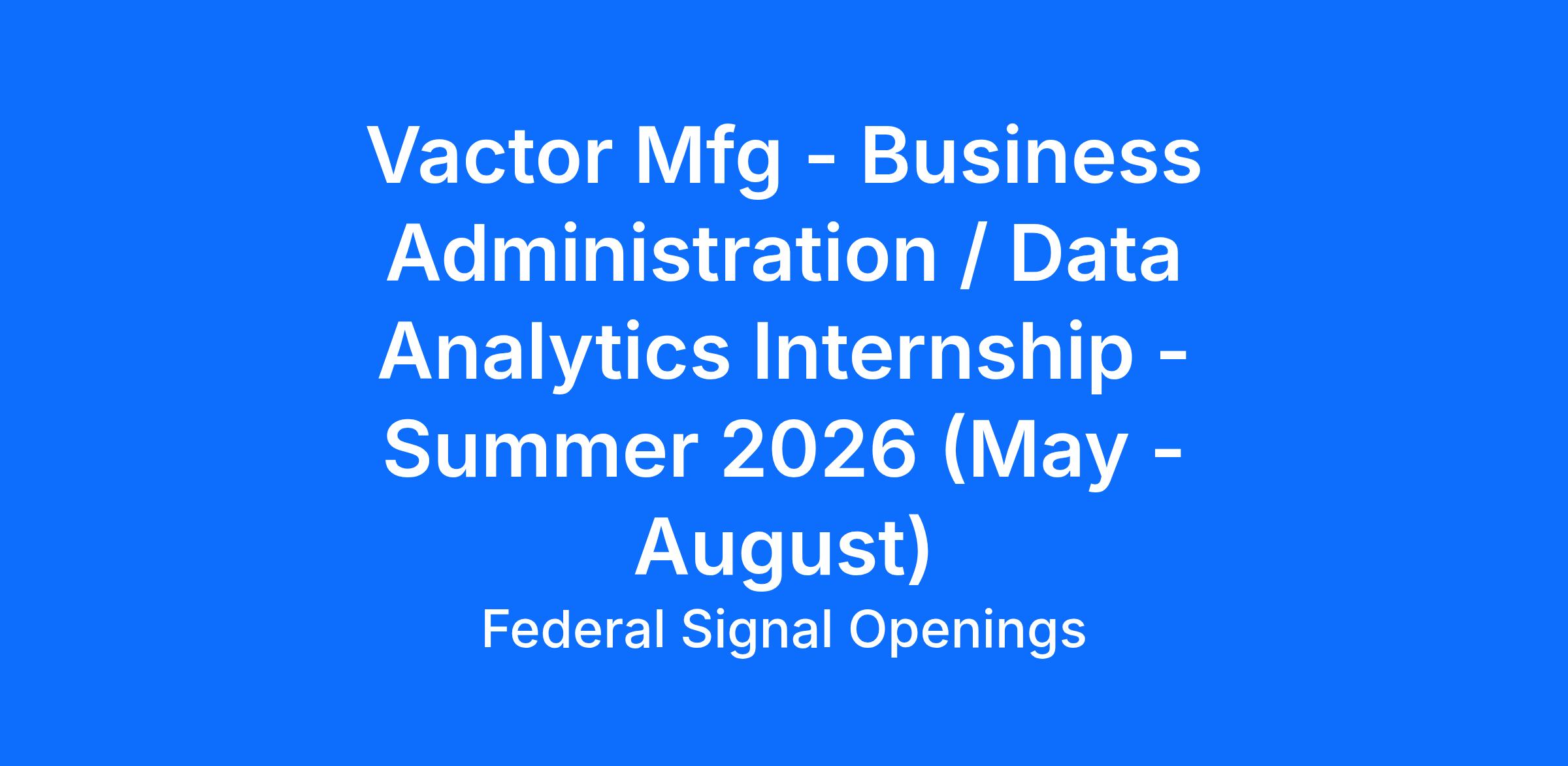 Vactor is currently seeking an Intern in our Sales Department for the summer of 2026. This is a great opportunity to gain hands on experience while applying what you have learned in school. These internships typically run from May through August.