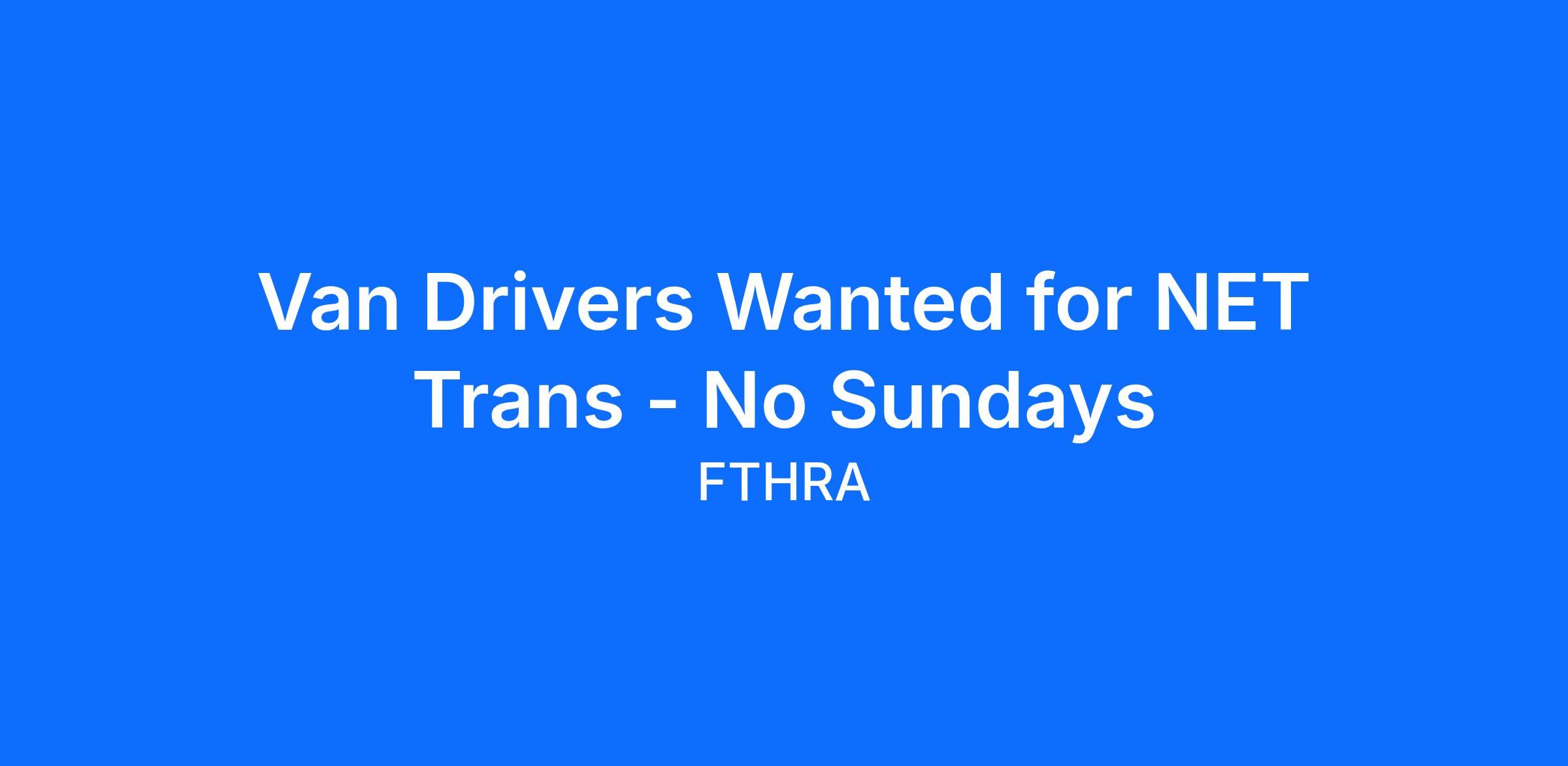 NET Trans Van Drivers Needed in Your Community. You will make a difference transporting clients to appointments and for shopping. Van parked in your driveway to eliminate commute to work. No Sundays and excellent fulltime benefits (14 paid holidays, 12 days paid-time-off, TN state retirement pension, and more).