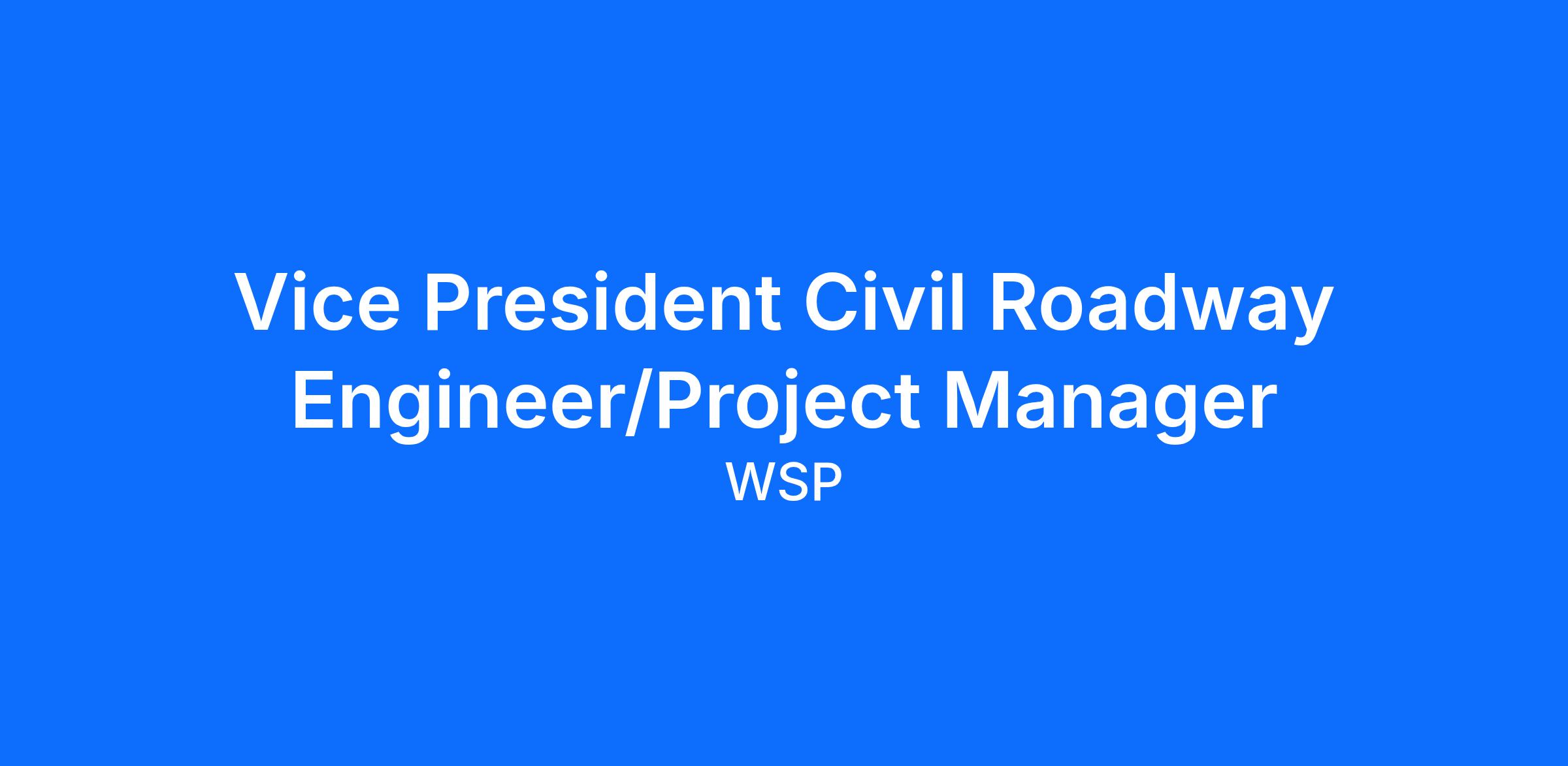 DescriptionWSP is actively seeking a Vice President Civil Roadway Engineer/Project Manager!