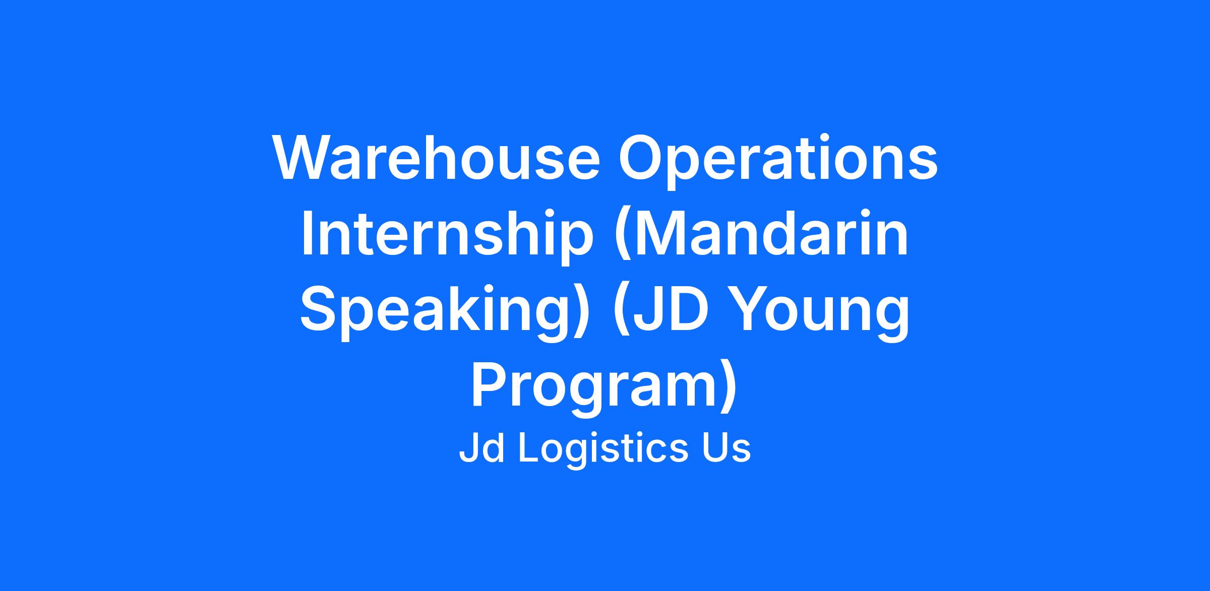 Position: Warehouse Operations Internship (JD Young program)