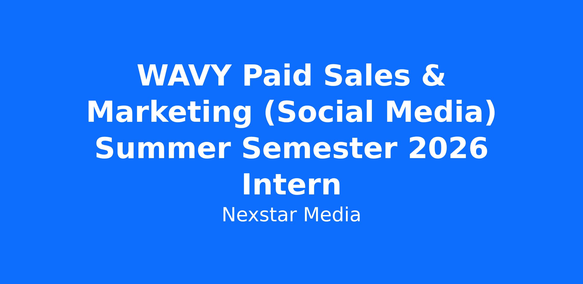 WAVY-TV 10/WVBT FOX43 is searching for a dynamic SALES & MARKETING INTERN who wants to make a difference for clients trying to grow their business through advertising with a top local TV station, along with our website and social media platforms. The intern will assist the sales team in creation of sales one-sheets, assist in planning of special sales projects, perform ratings research, assist staff in prep for sales calls, and work with clients on social media strategy.