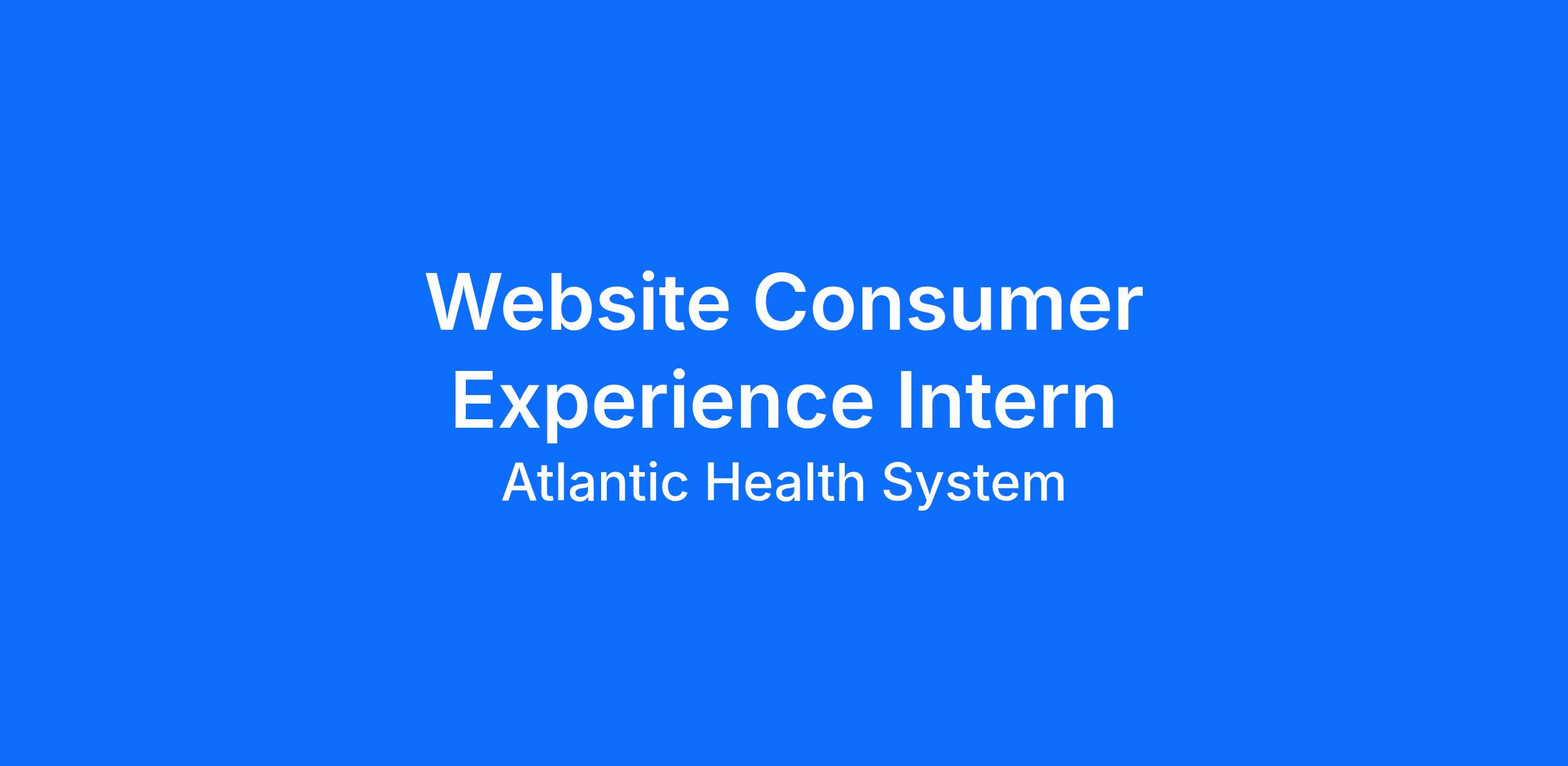 Atlantic Health is seeking a full-time intern for the Website Consumer Experience Team. In this role, you will help people in our community find and access Atlantic Health's exceptional care through digital platforms. Responsibilities will include, but not be limited to: