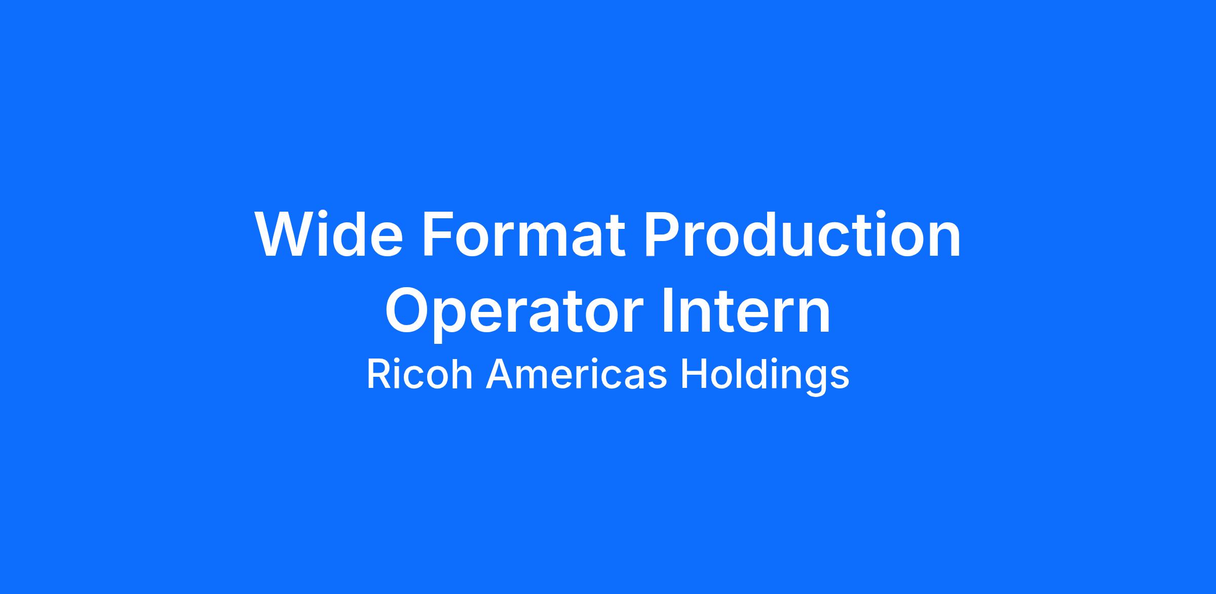 Wide Format Production Operator Intern