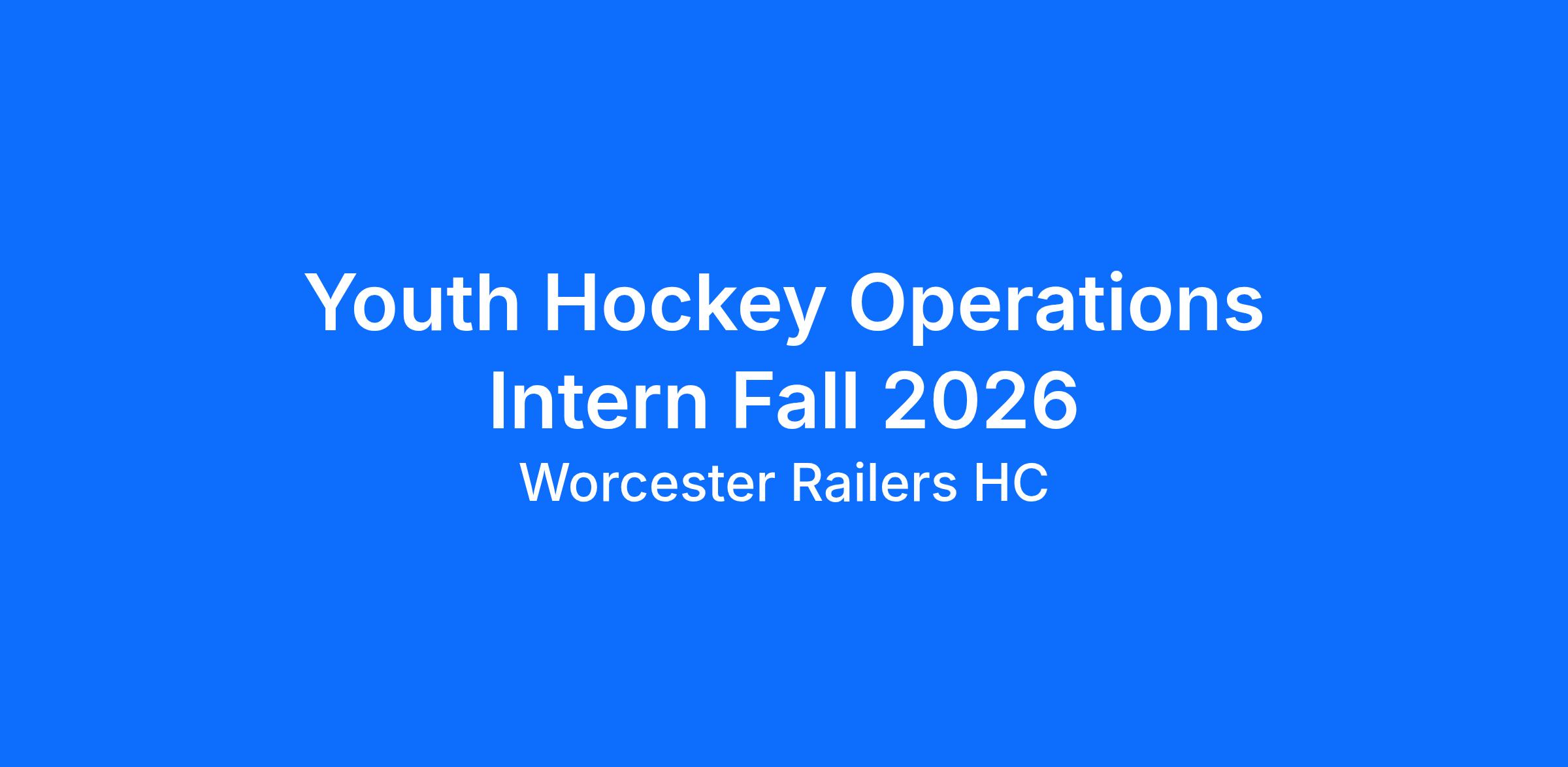 The Worcester Railers HC of the ECHL is looking for multiple FOR CREDIT ONLY Youth and Amateur Hockey Operations interns in the 2026-27 Academic Year starting in September and ending in December or continuing throughout the season. Candidates must be current college students and must be able to dedicate 15+ hours a week to the internship. Strong verbal skills are essential, as is the ability to work well in a dynamic, small-office environment. The successful candidate should be dependable, able to handle multiple tasks, and work long hours (evenings, weekends & holidays included).